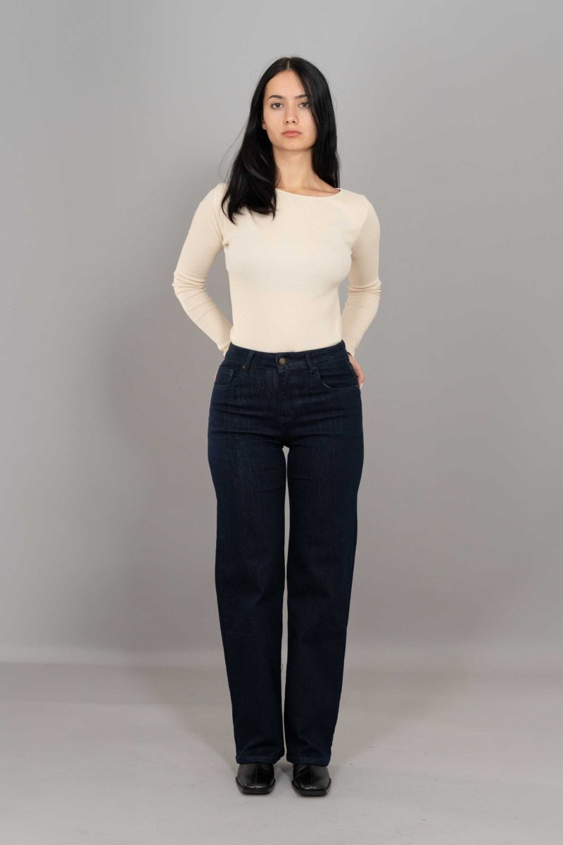 Il jeans Vivi unisce comfort e struttura grazie al tessuto in puro cotone e alla gamba morbida che scende dritta fino al fondo.