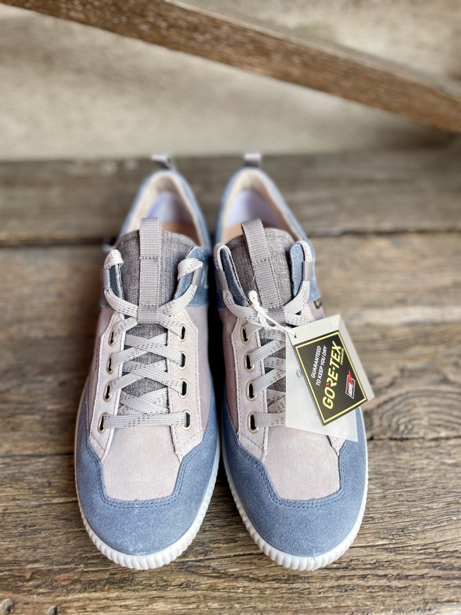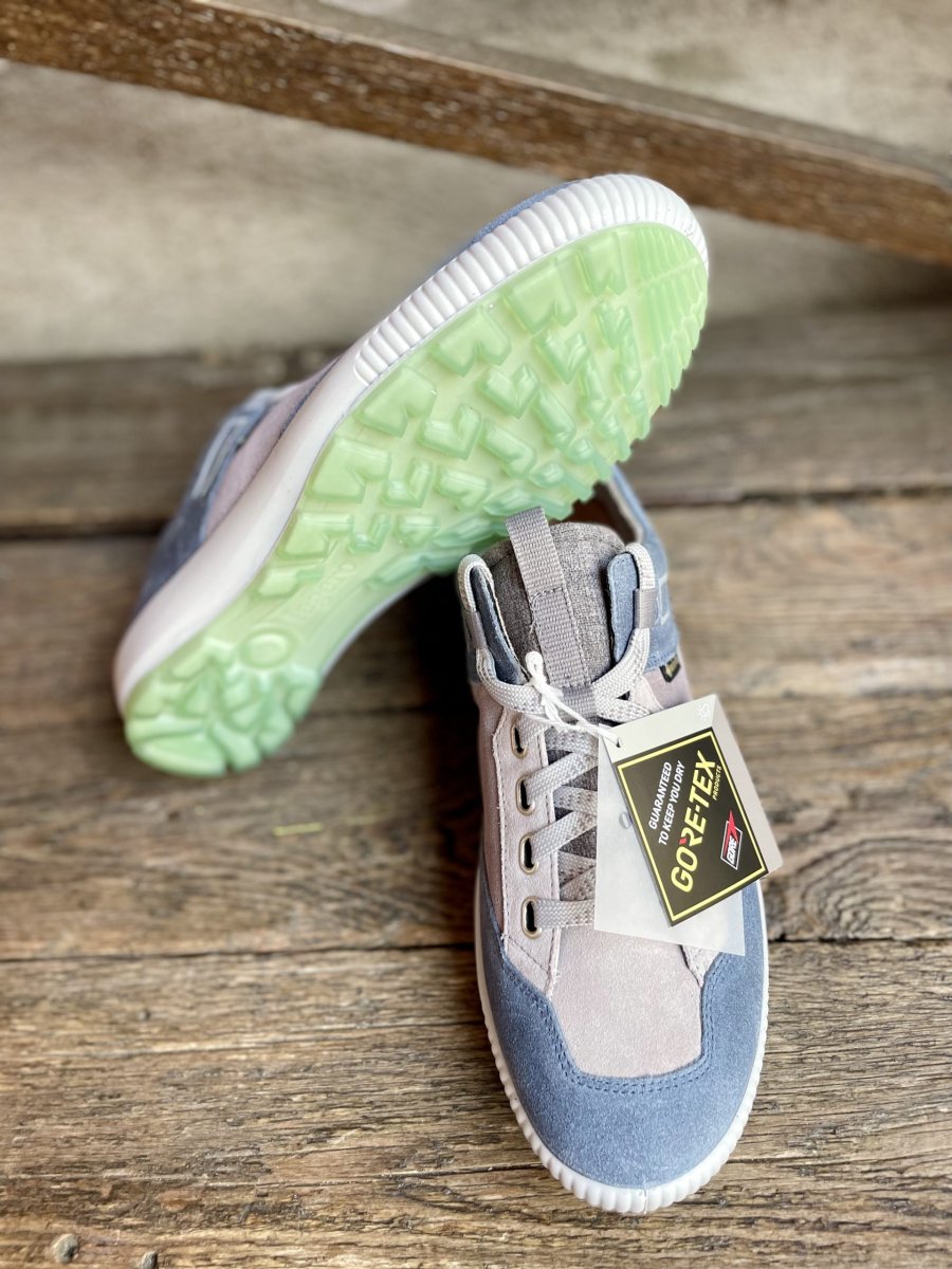 Fantastiche prestazioni di questa calzatura impermeabile e traspirante in camoscio beige e azzurro, con membrane goretex e suola leggera, in gomma chiara scolpita. Il disegno nuovo è solo un dettaglio, la qualità e la lunga durata di questo brand austriaco sono rimasti immutati. Le misure disponibili da donna fino al 42 sono espresse nelle misure internazionali UK