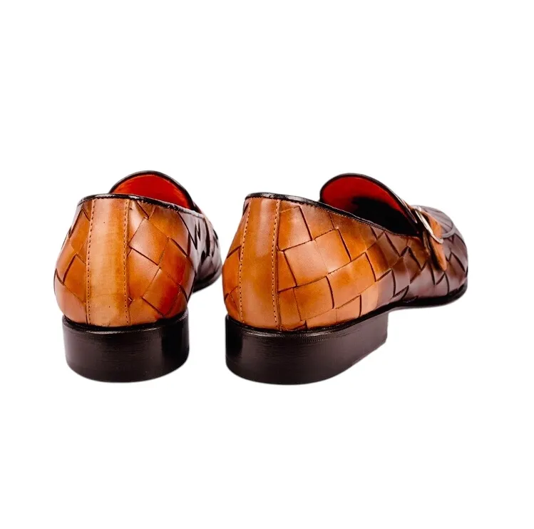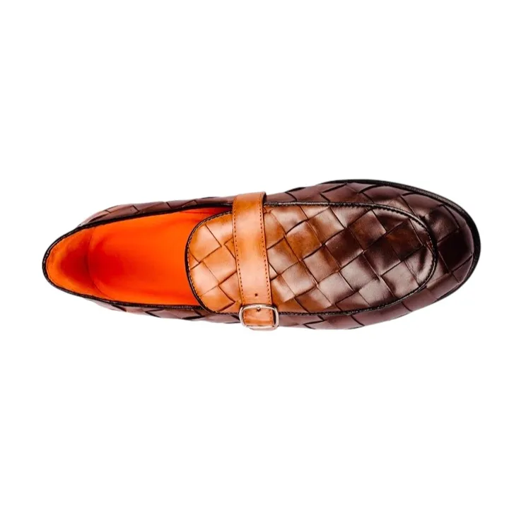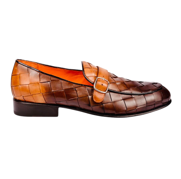 La loafer mocassino uomo Alberto – art.7003 è’ un mocassino realizzato in vitello crust tamponato a mano e patinato intrecciato colore Bruno-testa di moro.