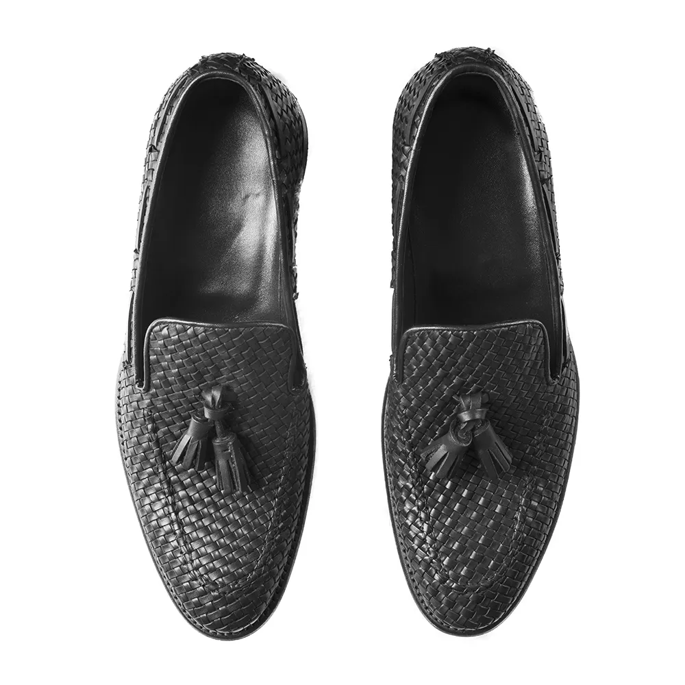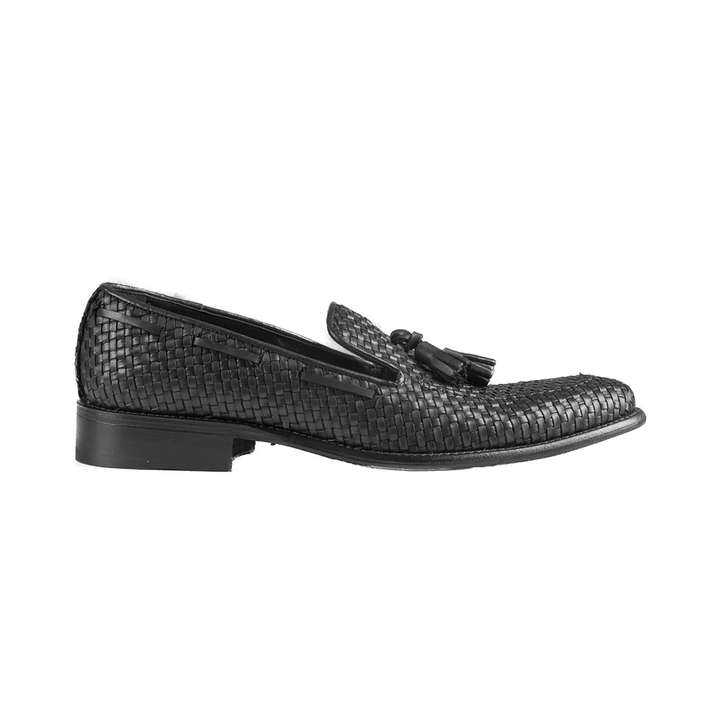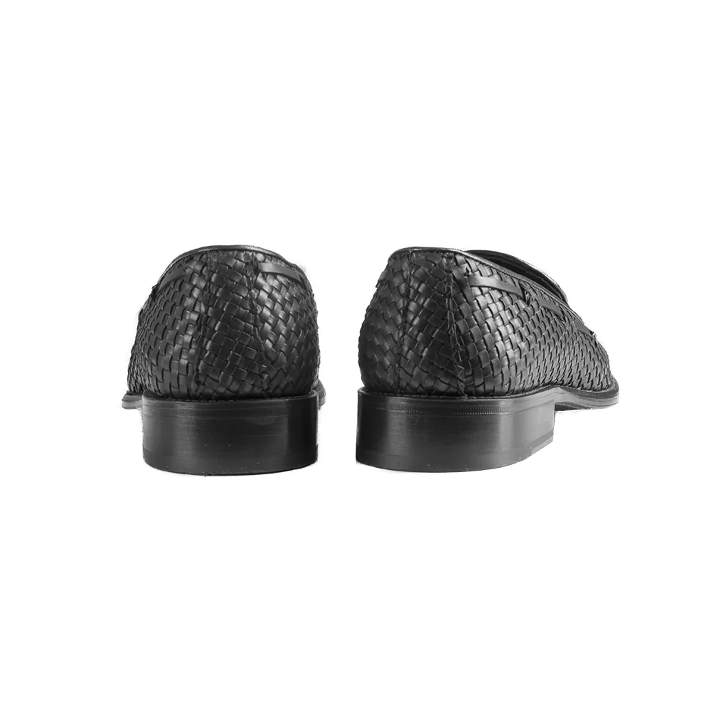 La loafer uomo discordia – art.8614 è un mocassino loafer in vitello nero intrecciato a mano
