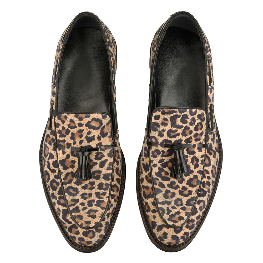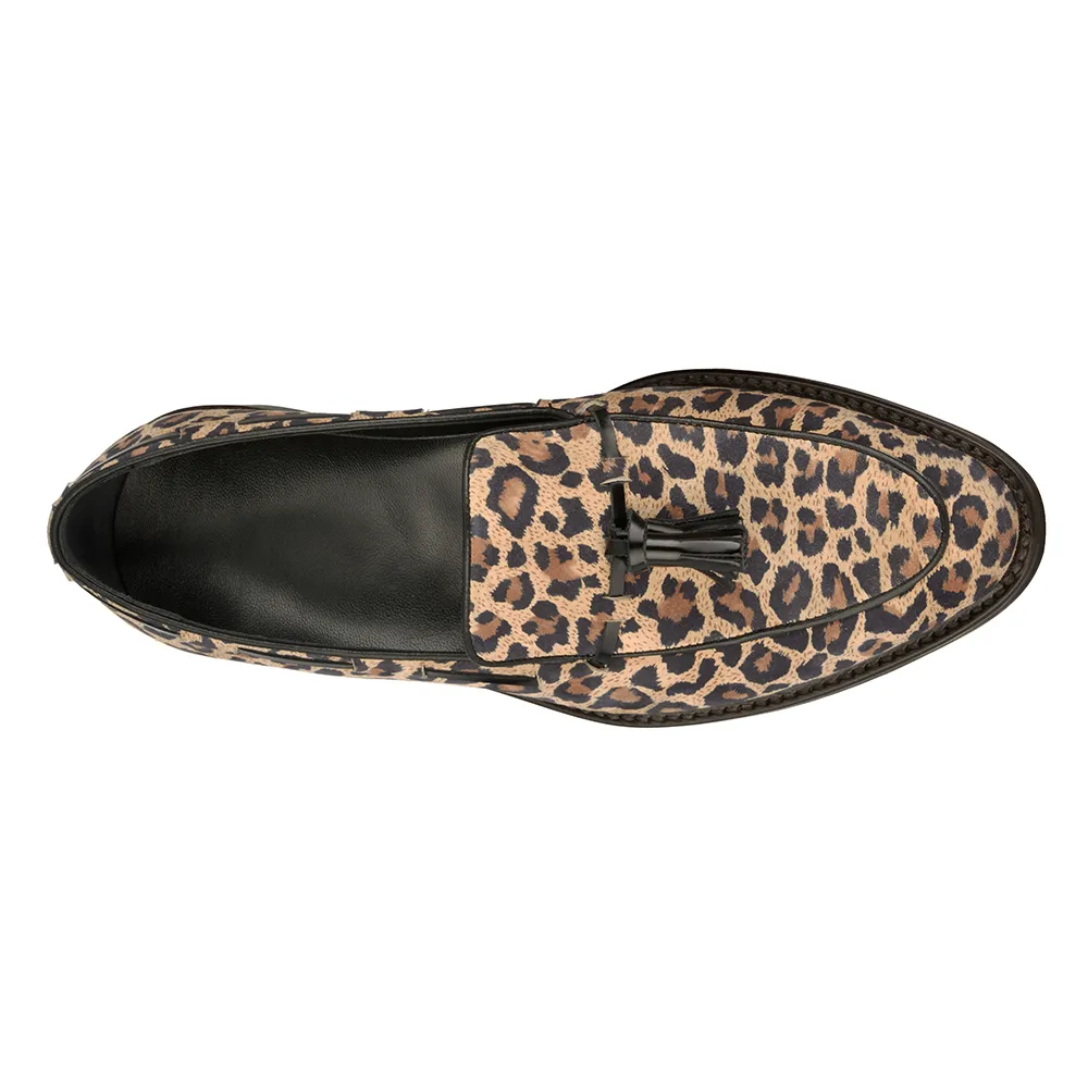 La loafer uomo leopard – art.8516 è un mocassino in camoscio stampa leopardo colore cappuccino