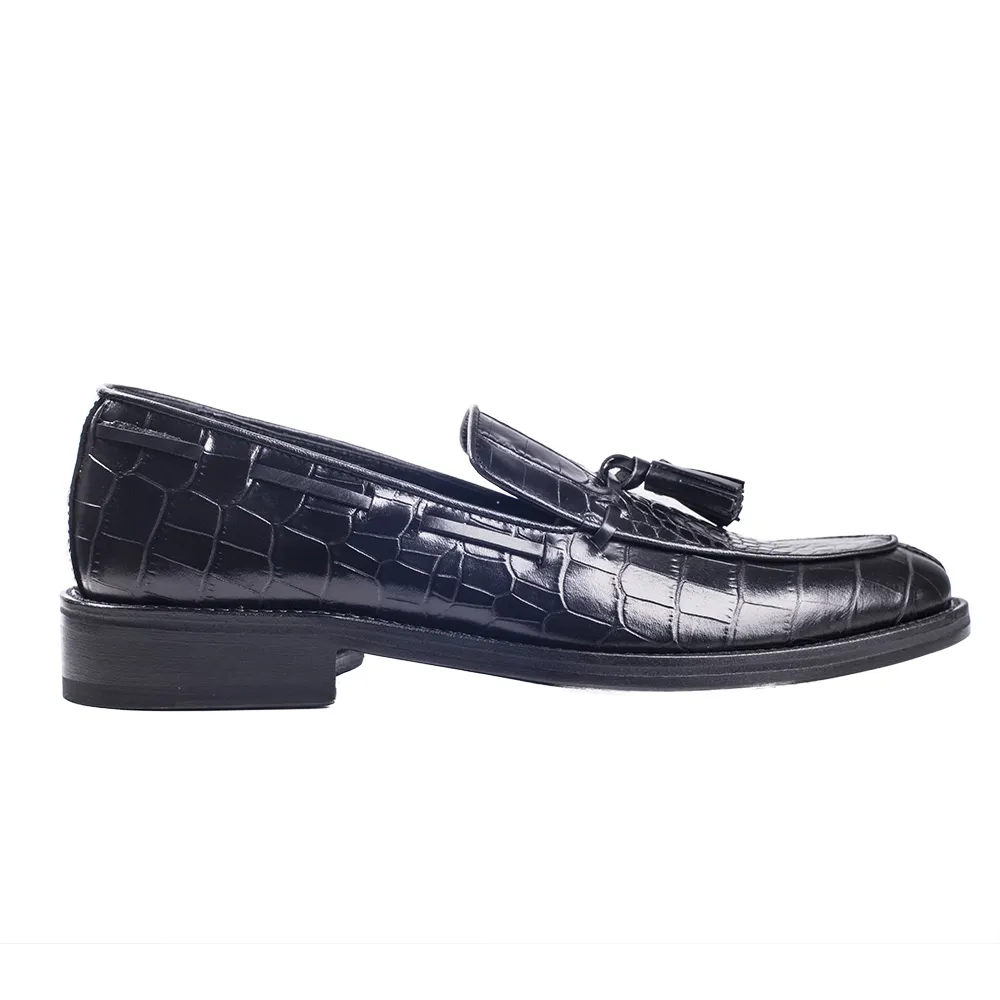 La loafer uomo ovidio – art.8590 è un mocassino loafer in vitello stampa coccodrillo nero
