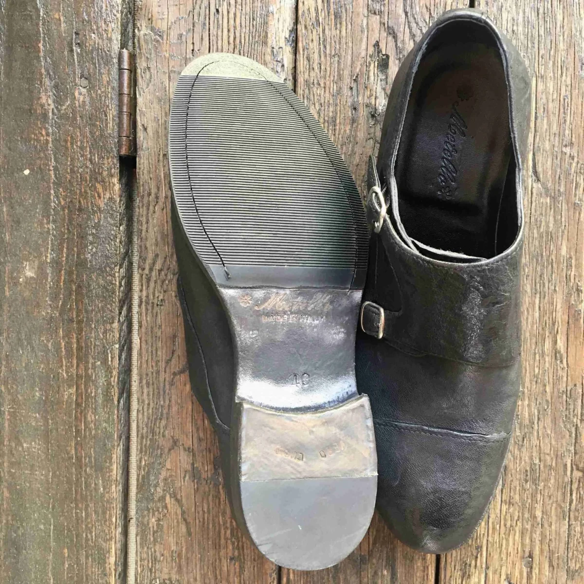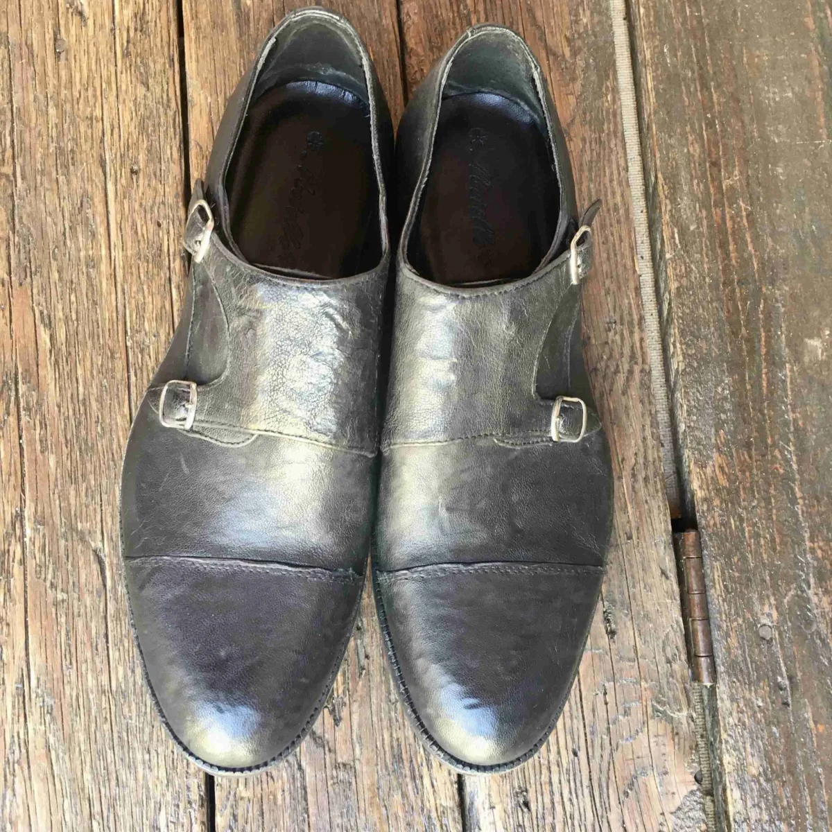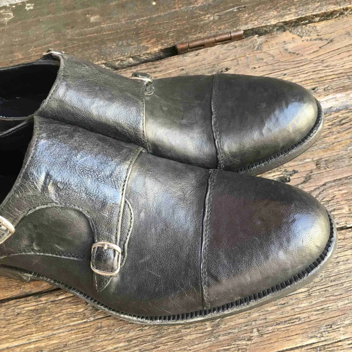 Invecchiare una calzatura burattandola in autoclave, la rende giovane, come questo modello monk in pelle nera slavata. Fodere pelle, soletta vero cuoio. Le due fibbiette sono supportate da elastico per ottimizzare la calzata. Suola cuoio con mezza gomma cucitura blake. tacco mezza gomma. Manifattura marchigiana. A richiesta misure fino al 50