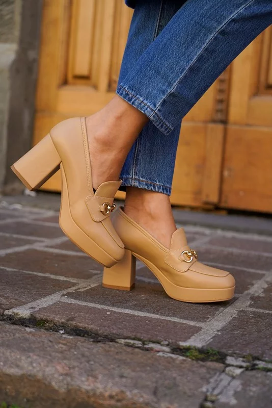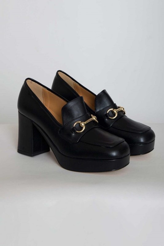 NUOVI ARRIVI OVIE’ LF497001CAP Mocassino in ecoepelle, fibbia accessorio platino e tacco largo e comodo, altezza 8 cm.