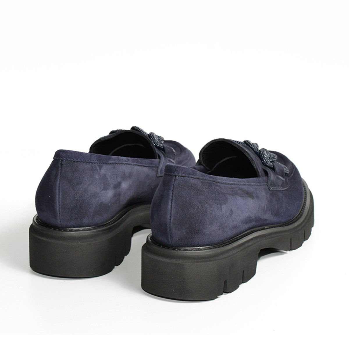 - Mocassino in morbida pelle scamosciata blu con accessorio.