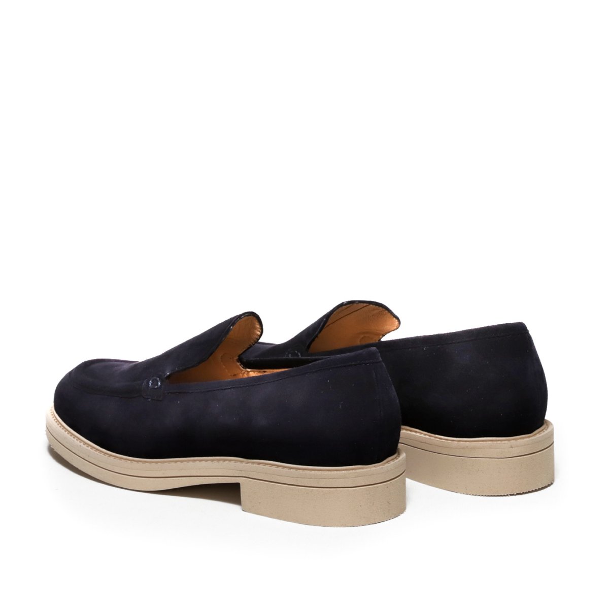 - Mocassino liscio in morbido suede blu.