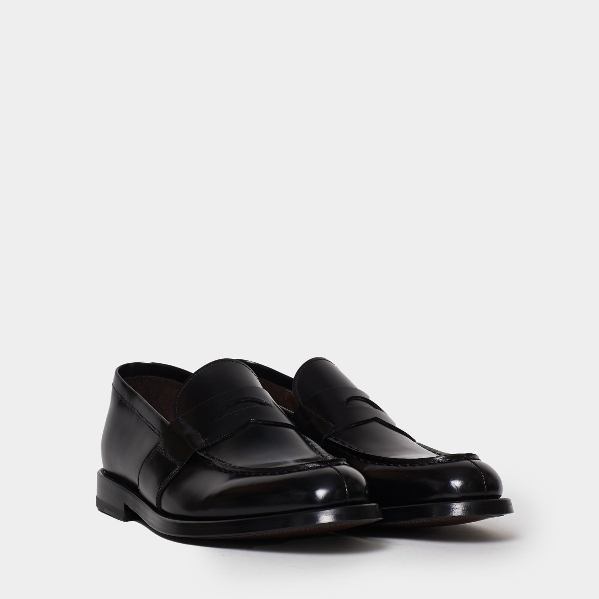 Mocassino in pelle pieno fiore spazzolata colore nero. Suola cucita con lavorazione blake a mano. Calzata regolare.