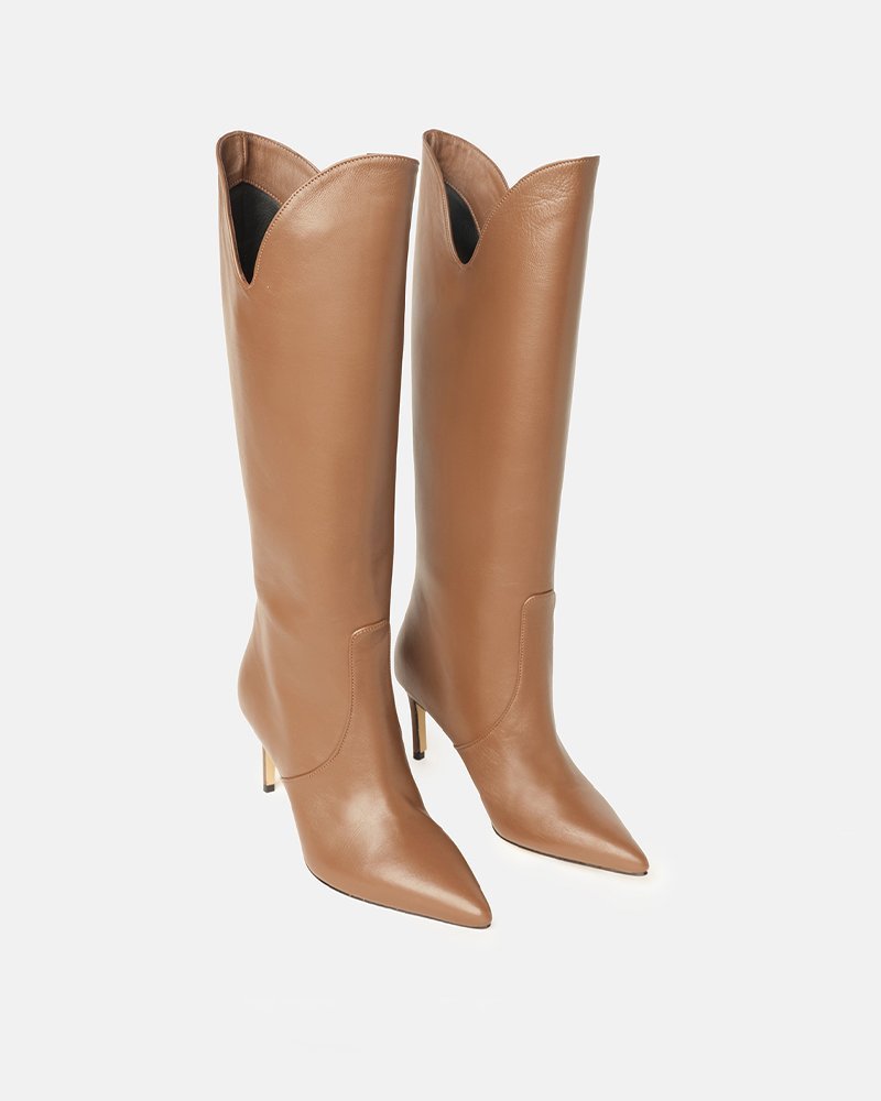 - Tacco fasciato pelle altezza 7 cm, altezza gambale cm40 , larghezza fusto cm19