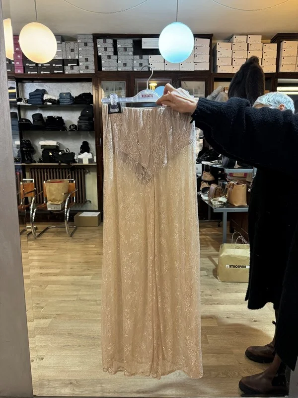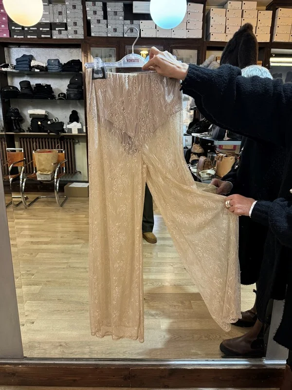 NUOVI ARRIVI A/I 2024 KONTATTO PANTALONE PIZZO MU1020F Pantalone kontatto a palazzo in pizzo con coulotte incorporata.