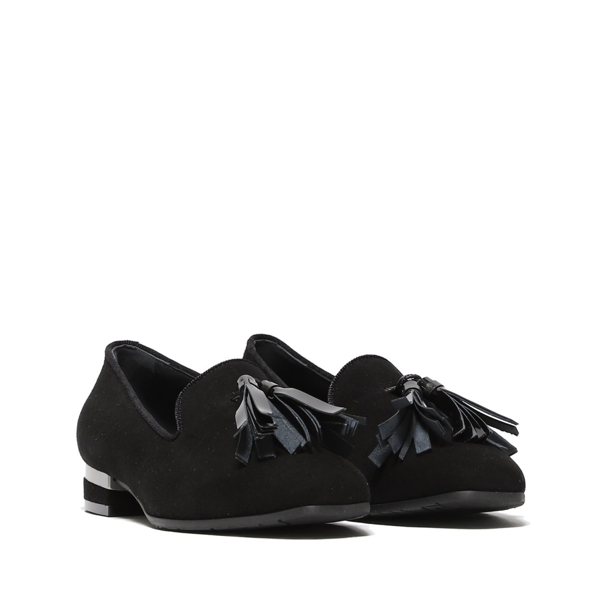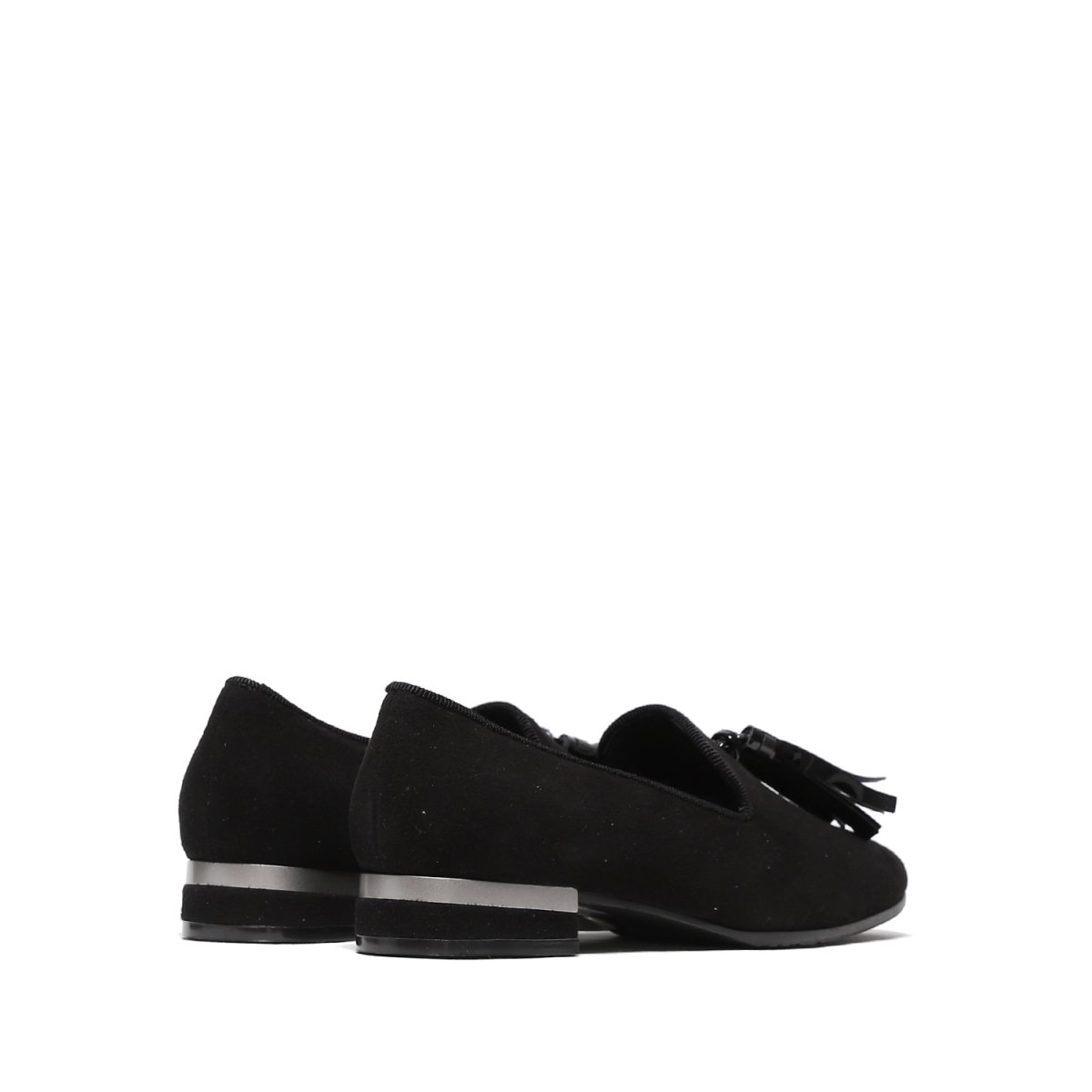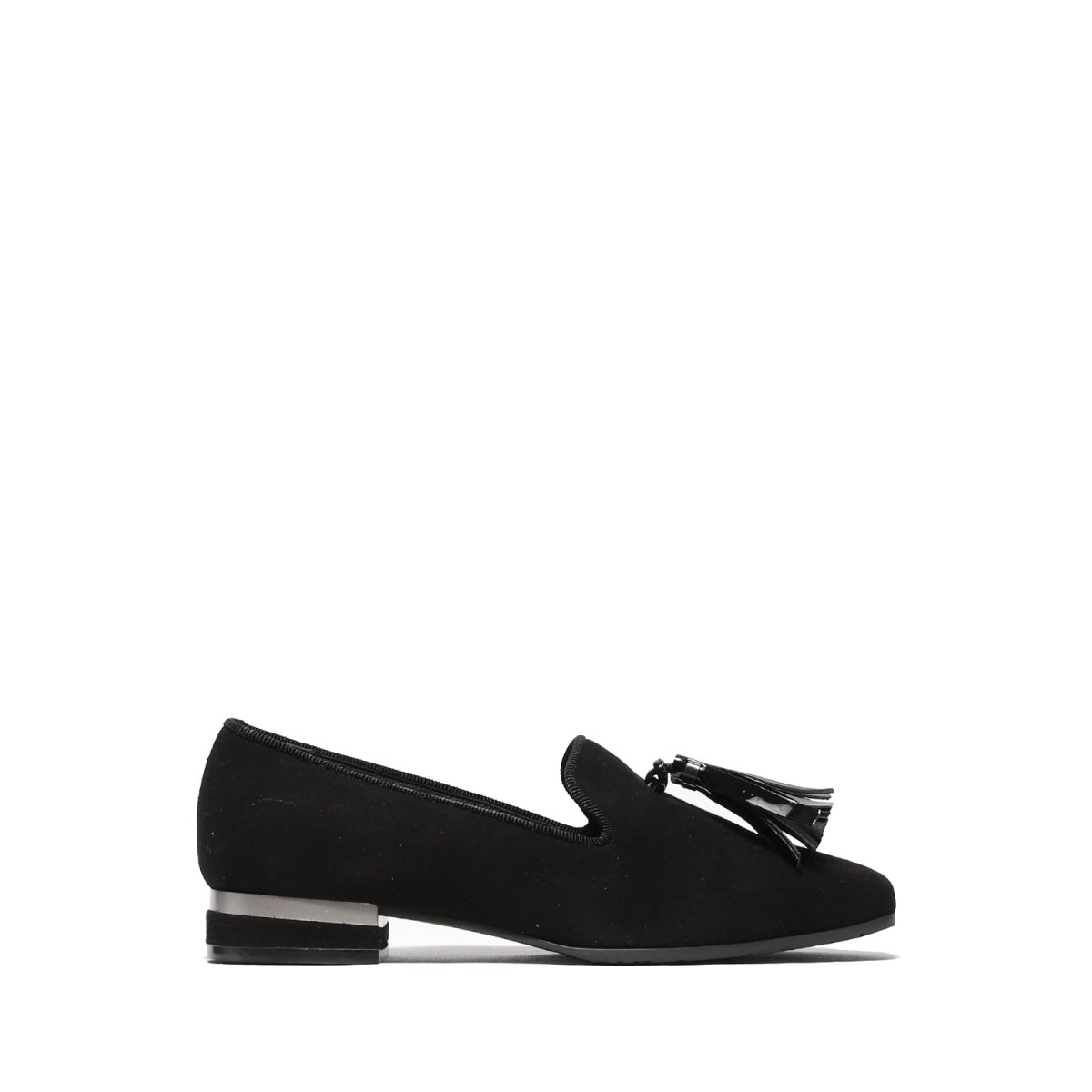 Pantofolina in morbido suede nero con nappine Tacco borda argento di 2 cm Calzata regolare