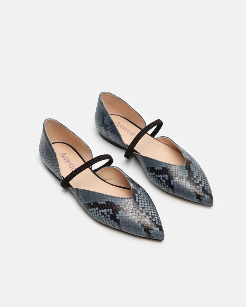 - Ballerina in pitone multi e cinturino camoscio