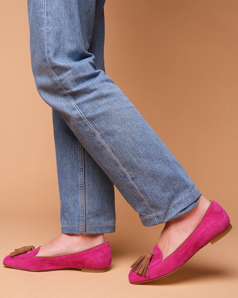 Mocassino in camoscio con nappine