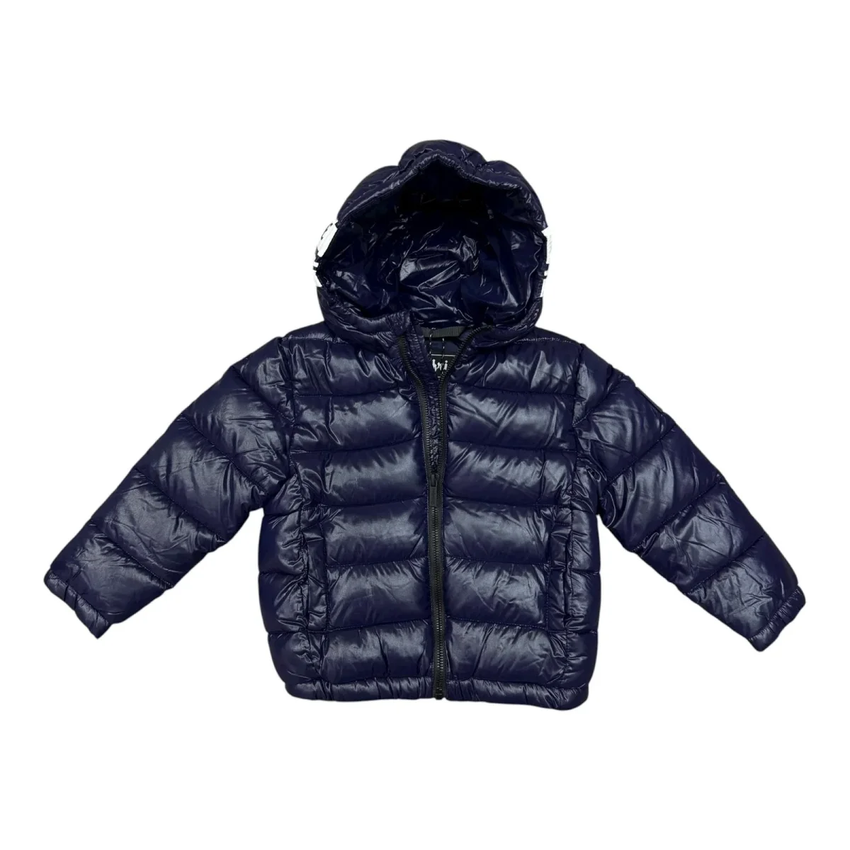 Piumino neonato, cappuccio fisso logato.