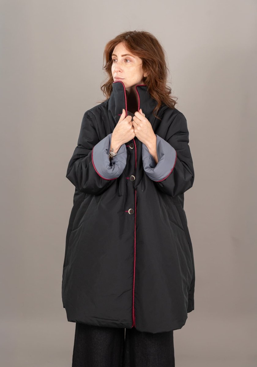 • Dettagli: profili a contrasto, maniche ampie, linea morbida