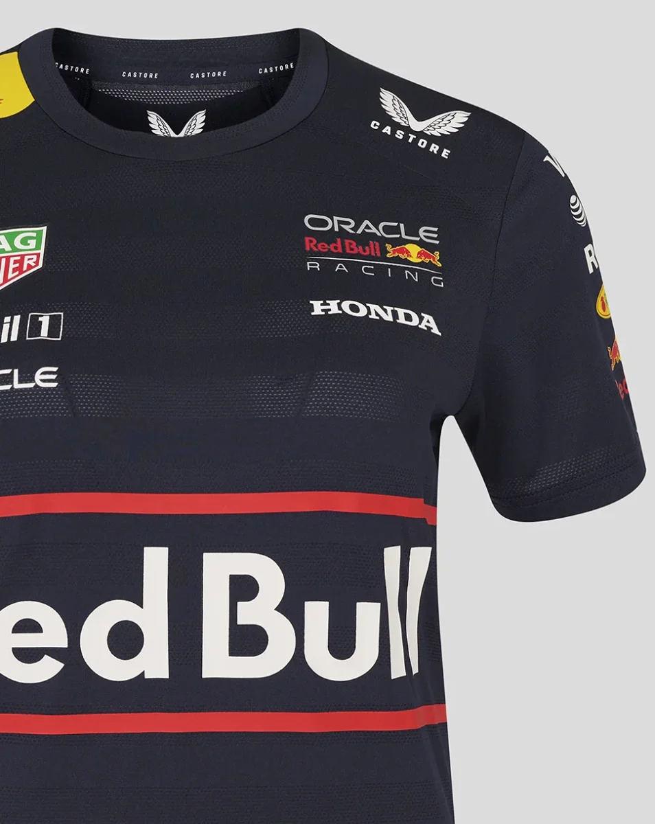 Una maglietta del Team Red Bull progettata per i fan, realizzata con un mix del 94% di poliestere e del 6% di elastan per comfort e stile. Questa maglietta da donna presenta una vestibilità moderna ed è parte della collezione Replica. Mostra il tuo supporto per il team Red Bull con questa maglietta elegante e confortevole, perfetta per ogni occasione casual o per le giornate di gara. Il suo bellissimo colore Notte Cielo la rende adatta a diversi outfit, aggiungendo un tocco sportivo al tuo guardaroba.