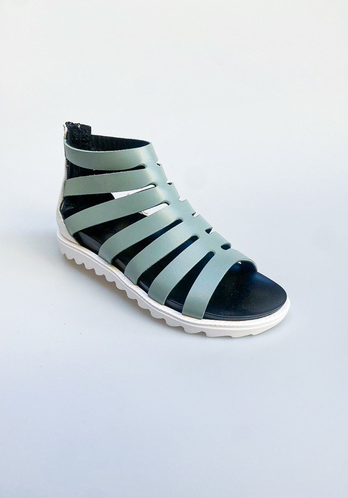 Sandali in pelle da donna. Modello alto alla caviglia con zip dietro.
