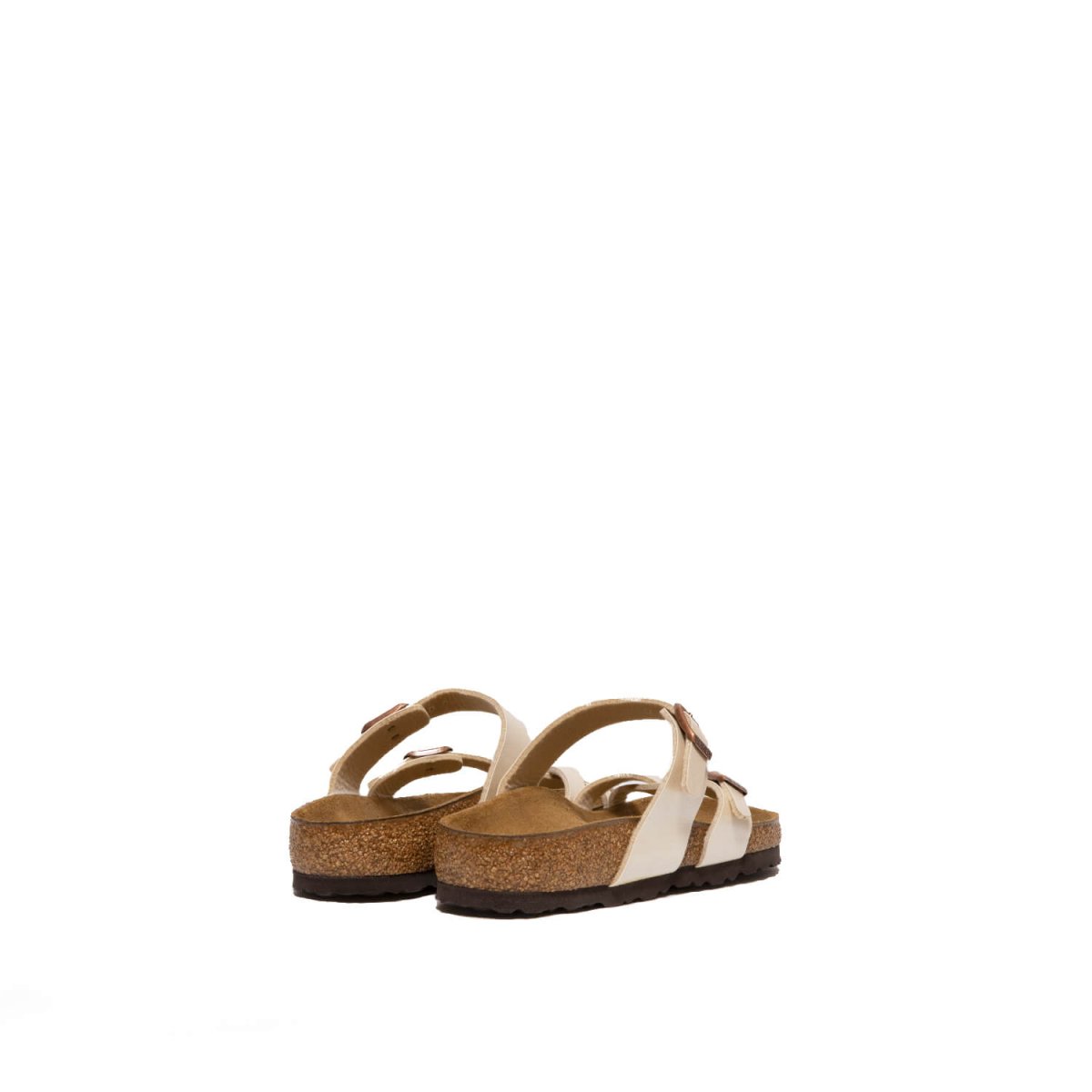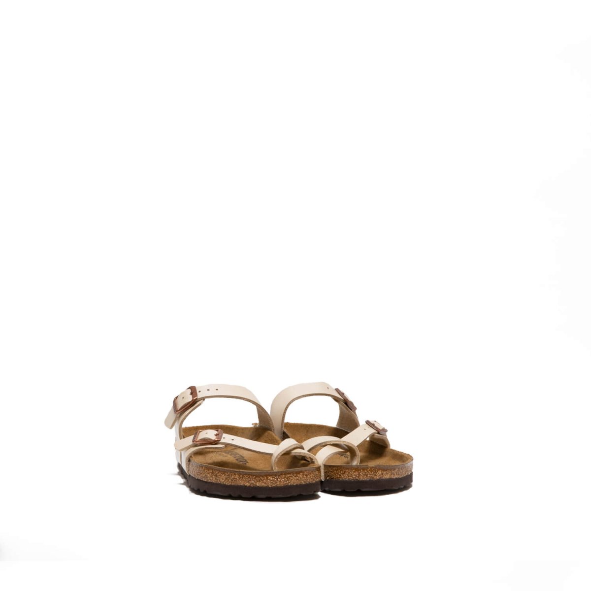 Sandalo infradito Birkenstock modello Mayari con cinturino attorno all’alluce. Tomaia in ecopelle Birke-Flor* bianco perlato. Plantare anatomico in sughero e lattice foderato in pelle scamosciata. Regular fit.