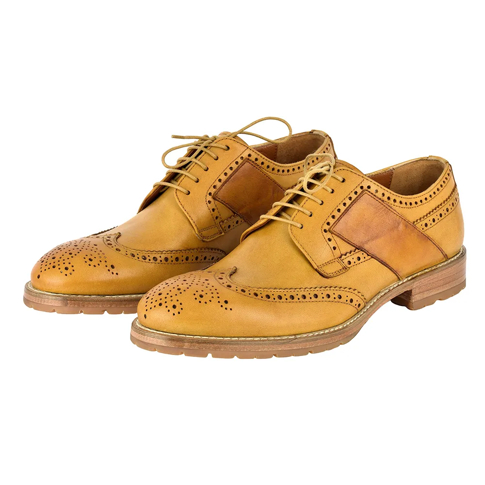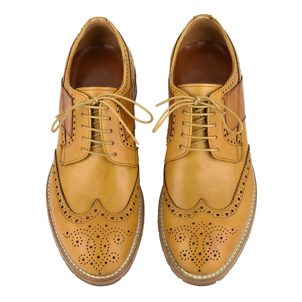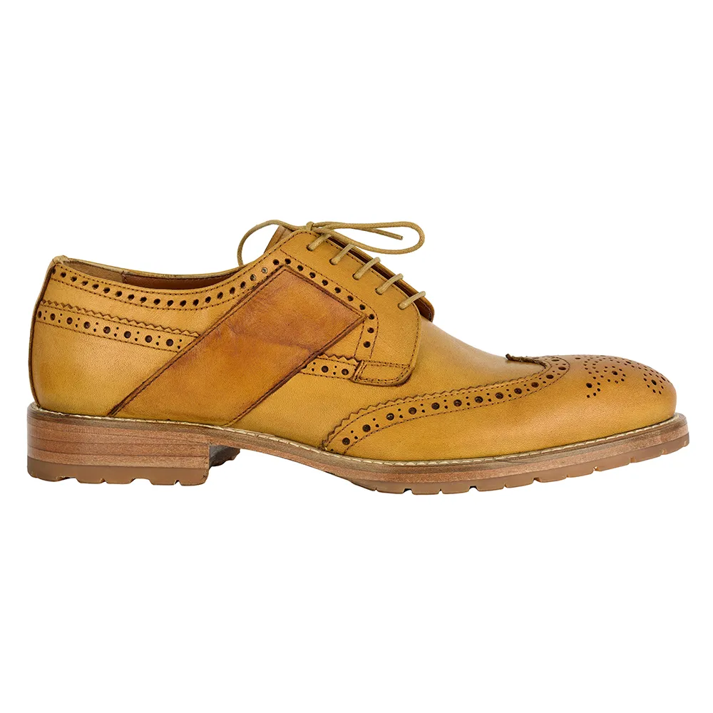 La scarpa classica uomo Dario – art.8500 è un derbies in vitello crust colore coloniale con suola in gomma vibram carro armato