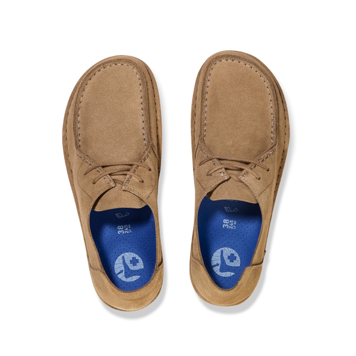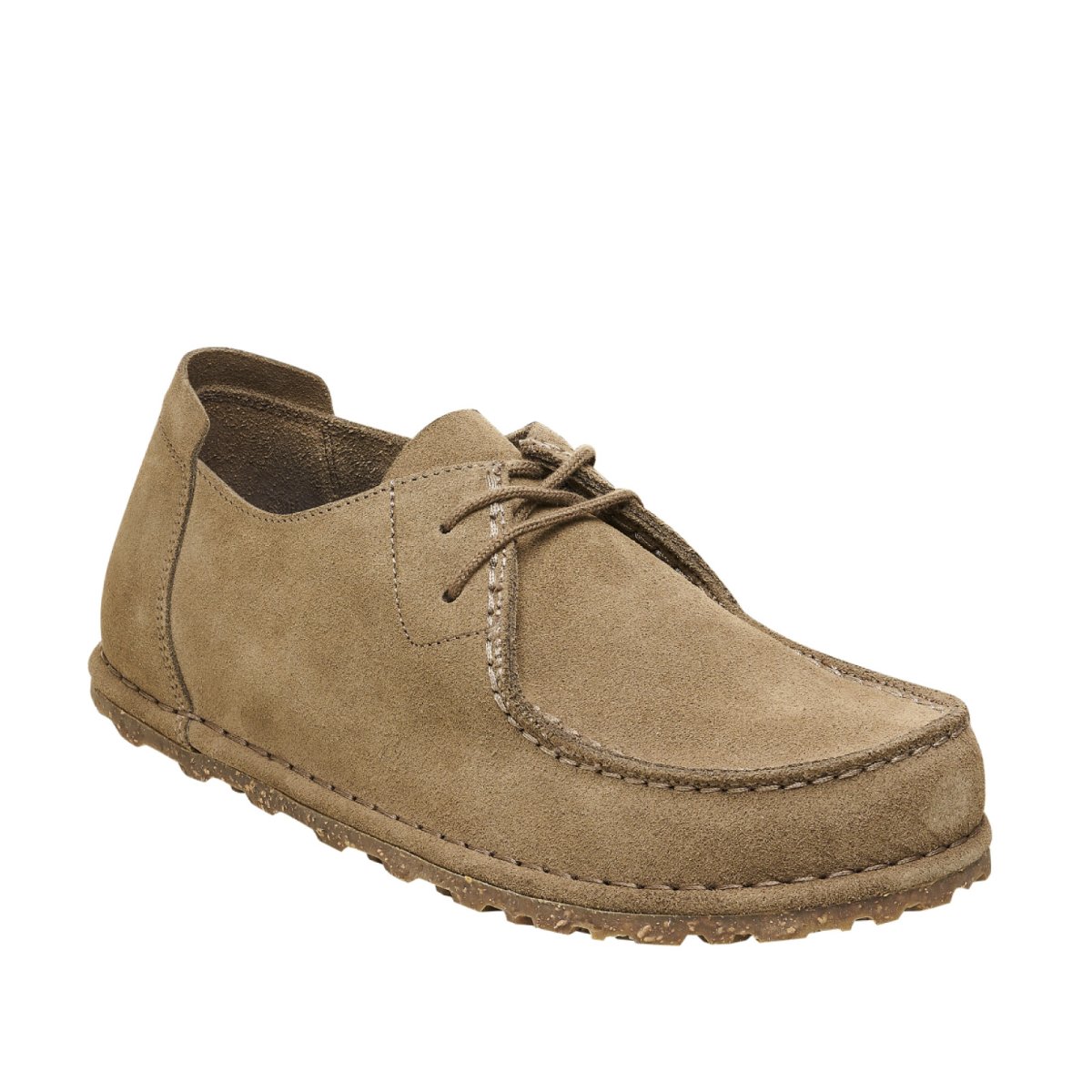 Scarpa legata a derby con vaschetta a mocassino Birkenstock modello Utti Lace. Realizzata in suede taupe ha un plantare estraibile e suola in lattice e sughero per un’estrema flessibilità. Calzata regolare.