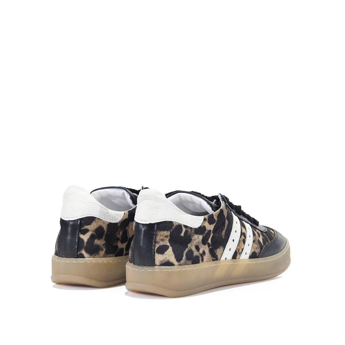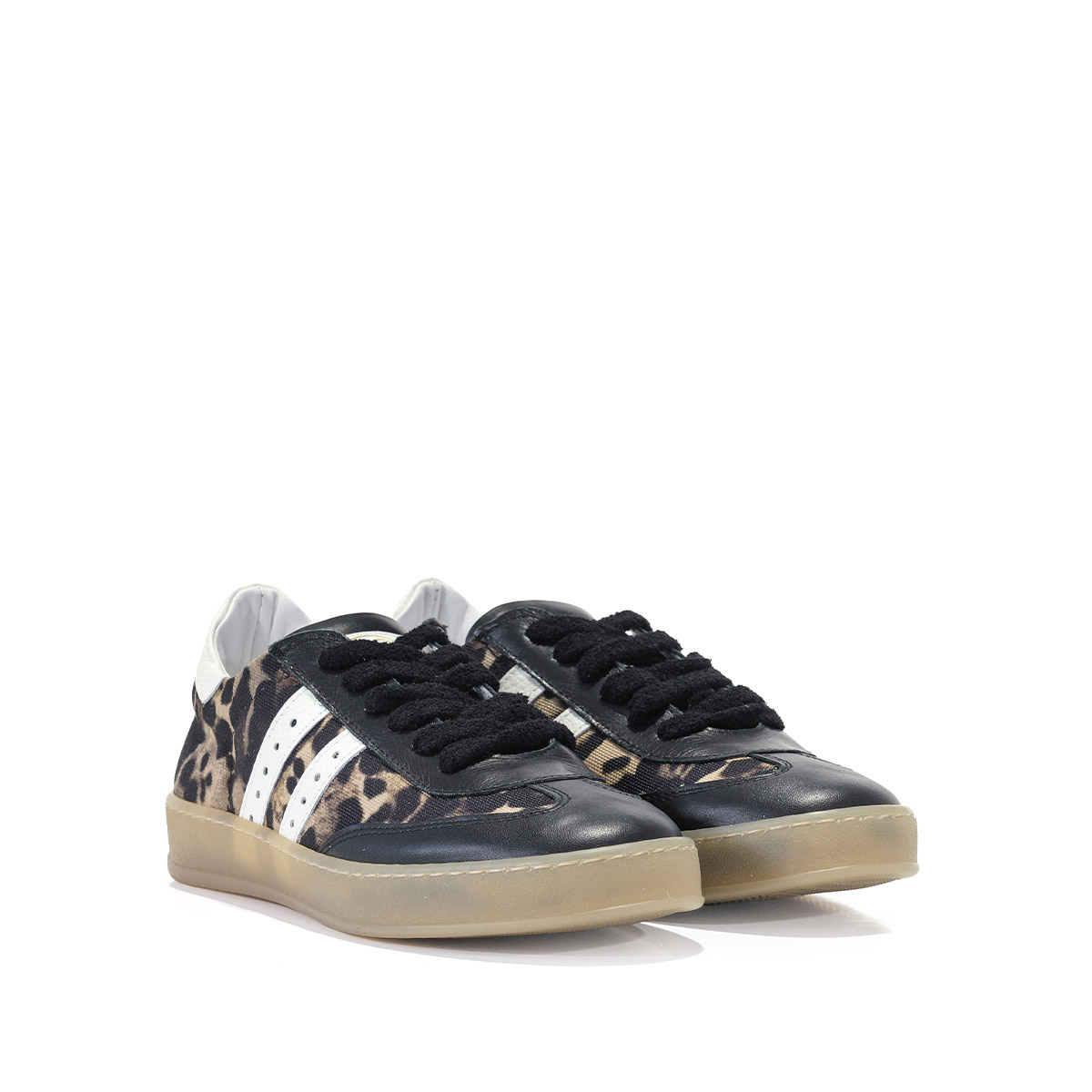 Sneakers in tessuto e pelle fodera e sottopiede in pelle fondo gomma produzione made in italy