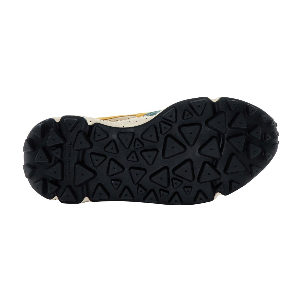 Sneaker Flower Mountain modello Yamano urbana dall’aspettto sport chic in suede e tessuto tecnico grigio taupe bianco. Dettagli in suede ocra military. Suola dentata per un grip ottimale per un’altezza complessiva di cm 4. Sottopiede in sughero rigenerato per una calzata regolare dal confort unico.