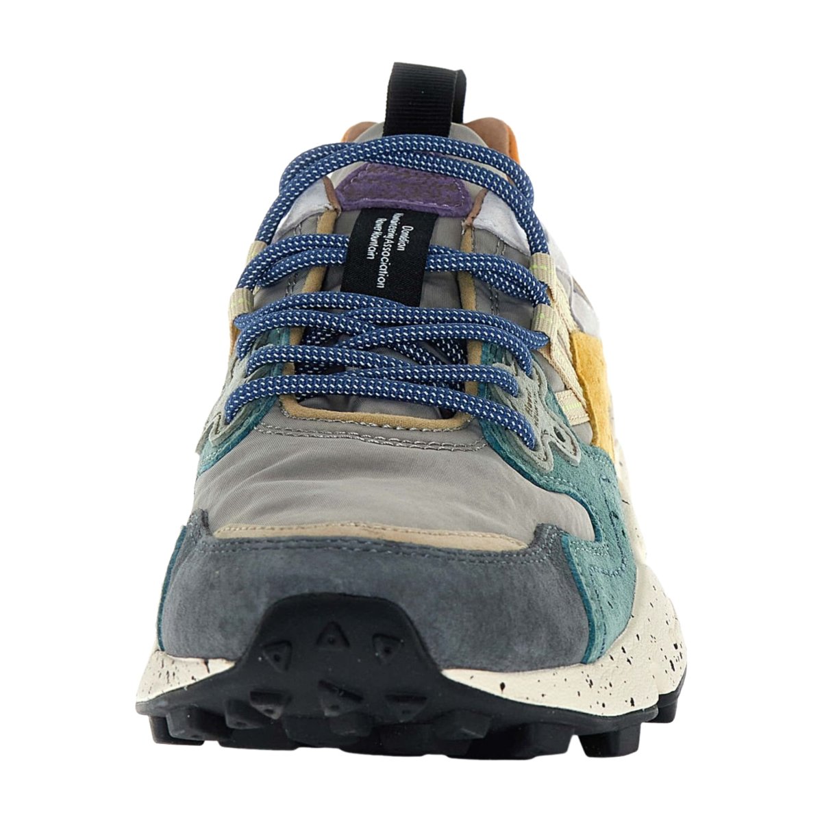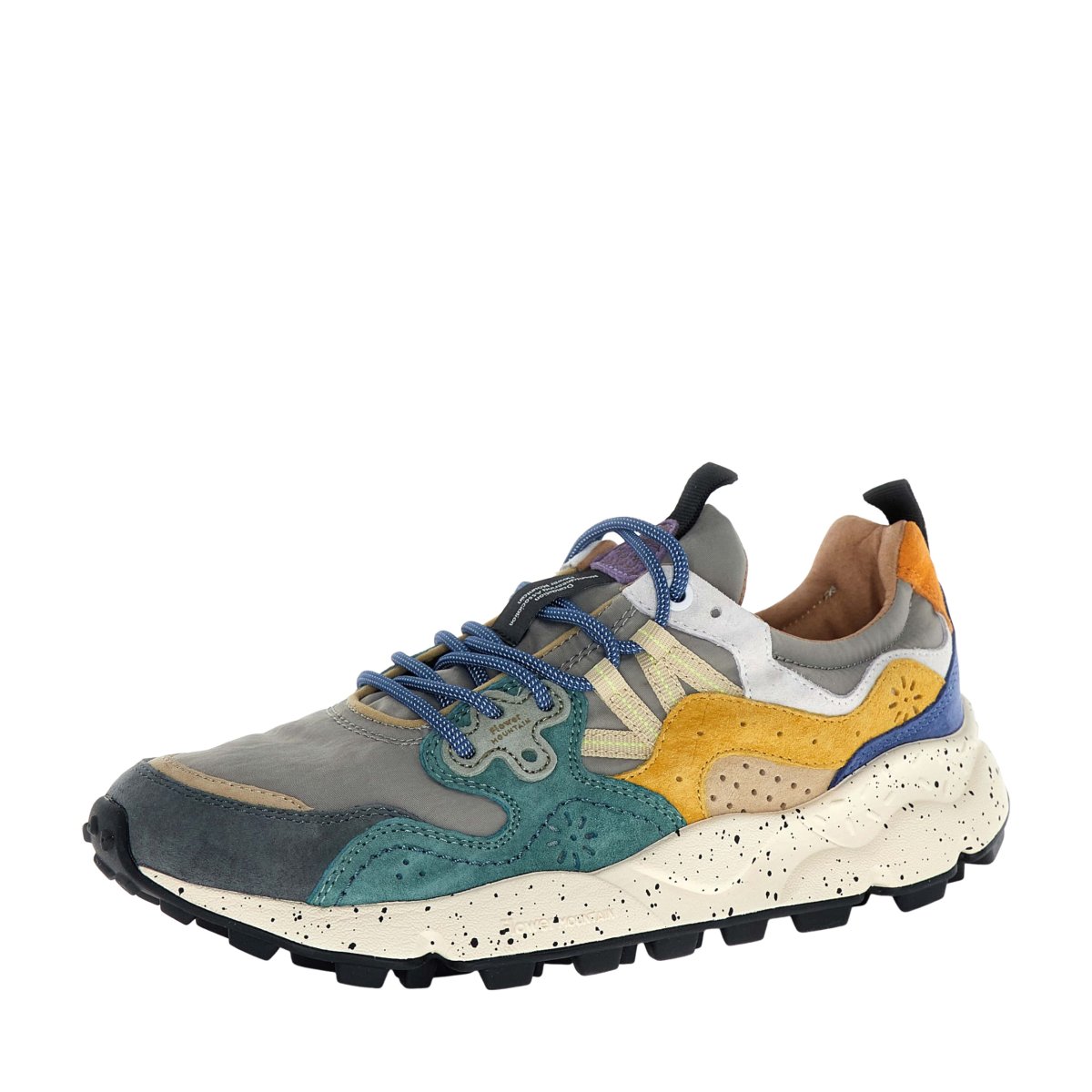 Sneaker Flower Mountain modello Yamano3 in suede e tessuto tecnico grigio zucca e petrolio
