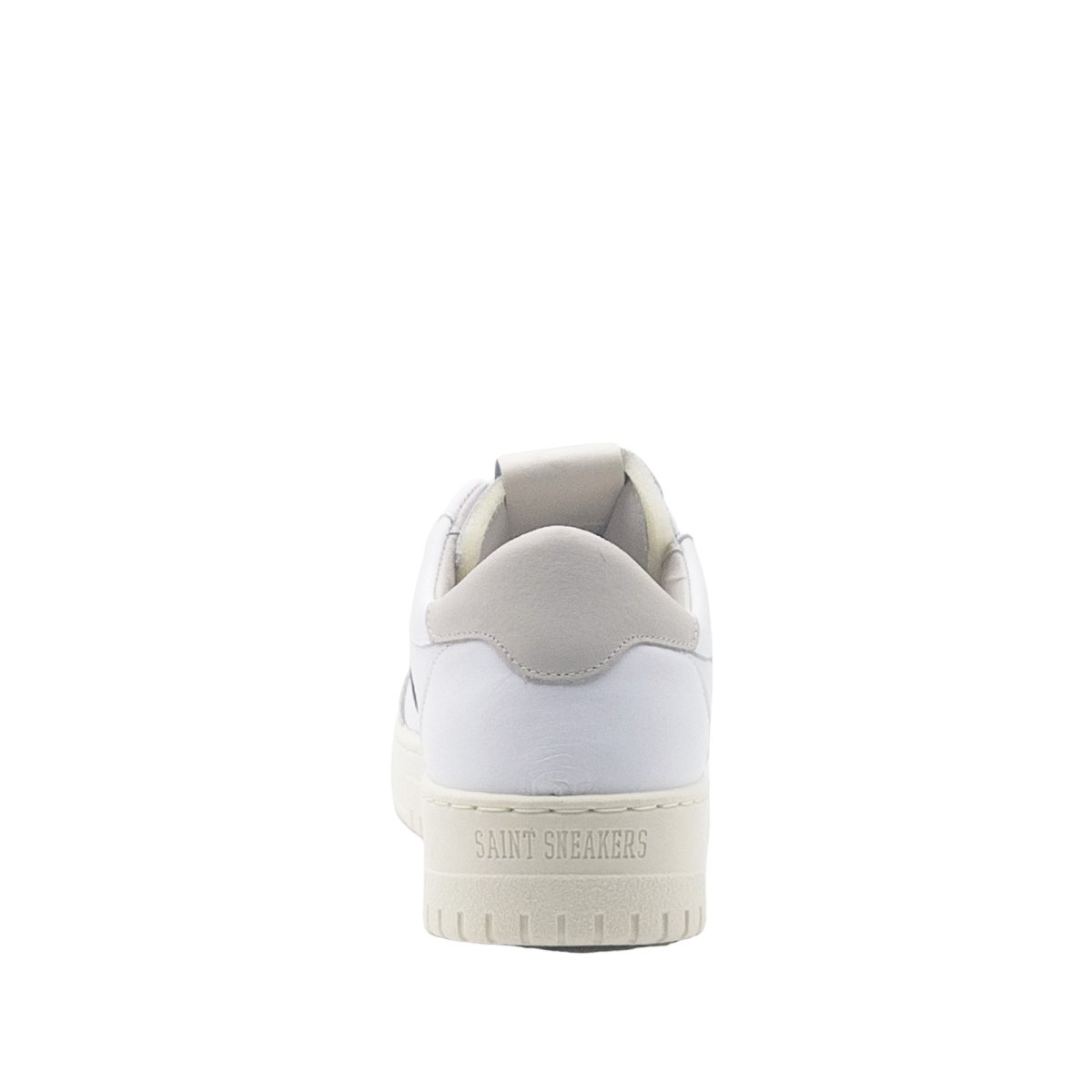 Saint Sneakers in morbida pelle bianca. Suola in gomma eva e fodera in tessuto e pelle. Plantare anatomico estraibile rivestito in pelle di 2 cm. Calzata regolare.