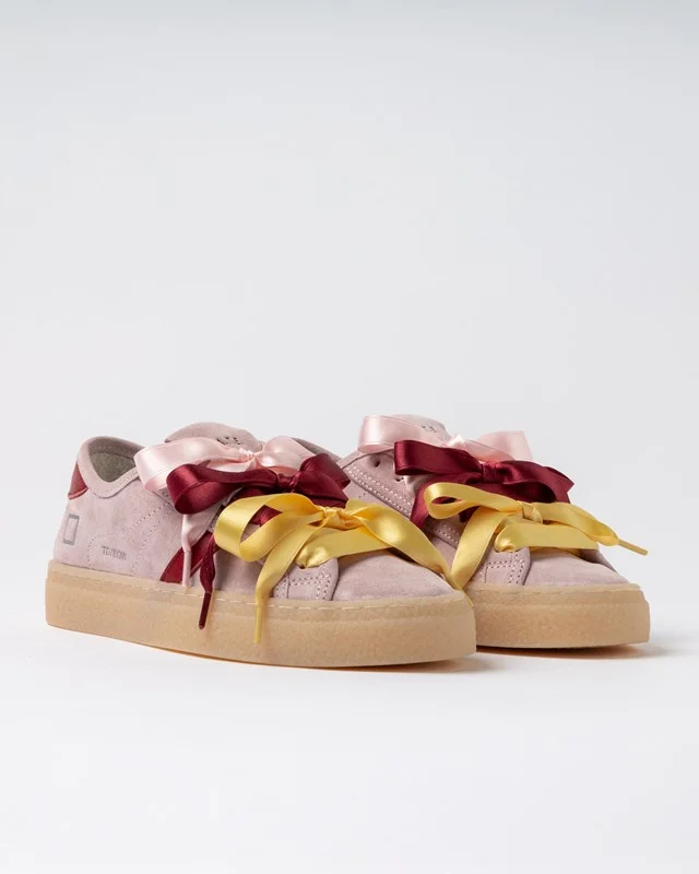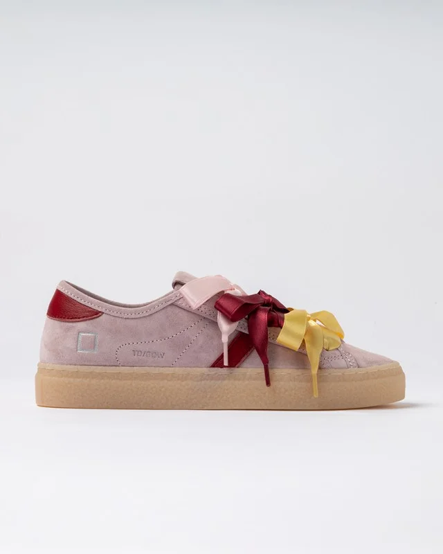 NUOVA COLLEZIONE DATE W441-TE-BW-PK SNEAKERS TENDER BOW PINK IN CAMOSCIO CON LACCI RASO DATE