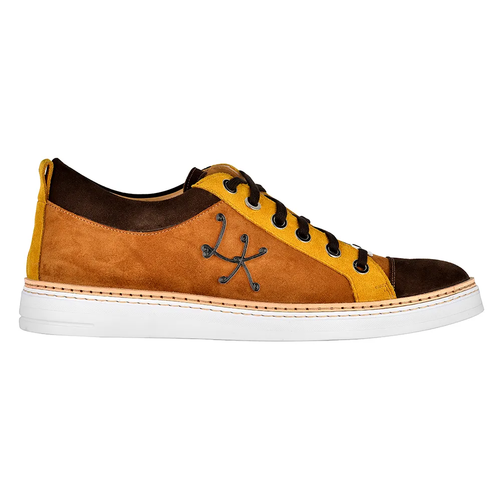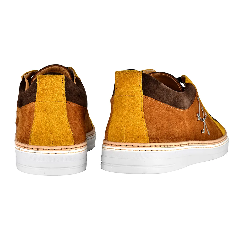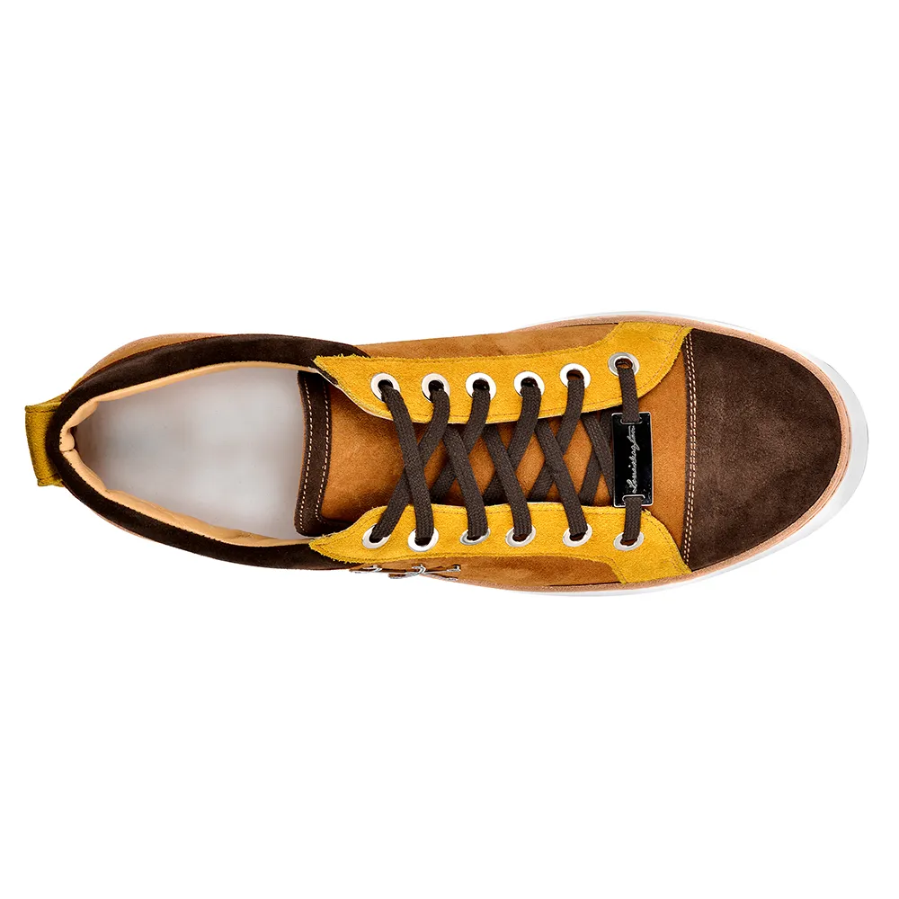 La sneakers uomo leaf – art.5943 è una sneakers di tendenza in camoscio tricolore testa di moro, cognac, ocra.