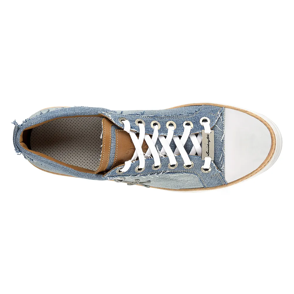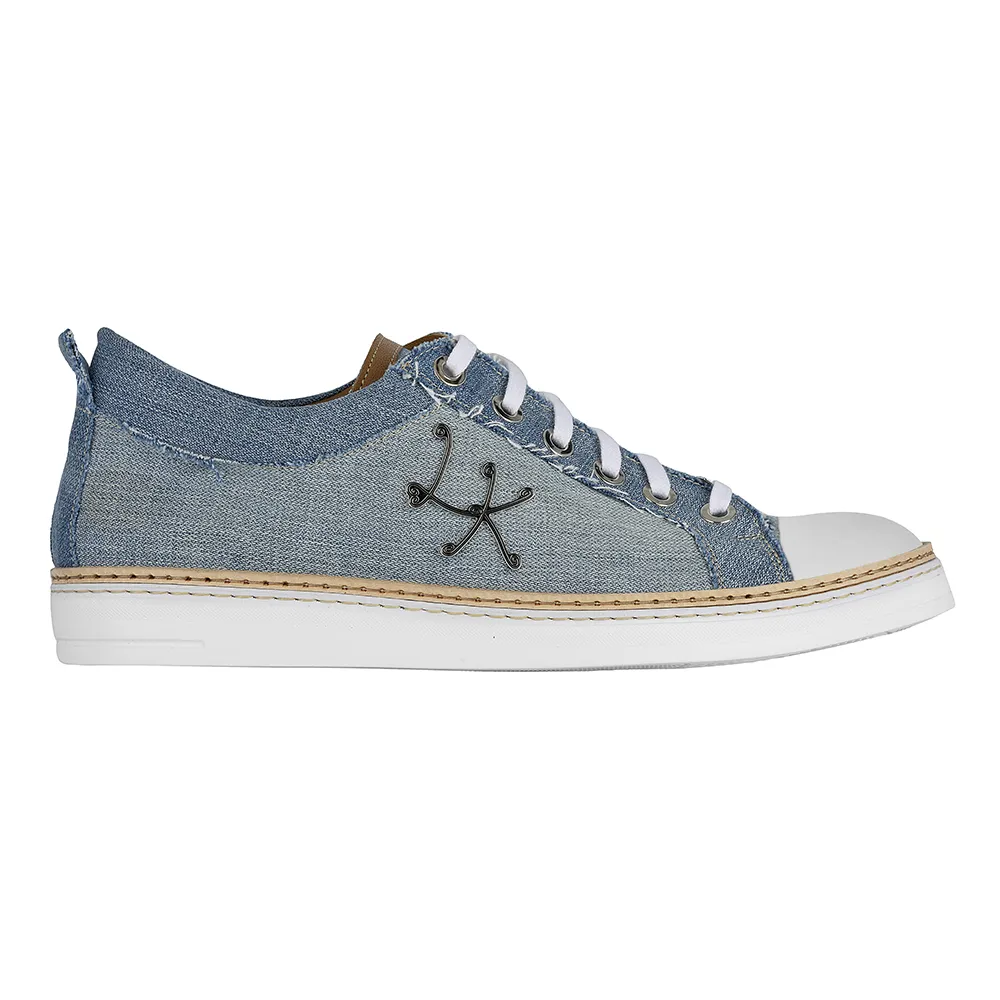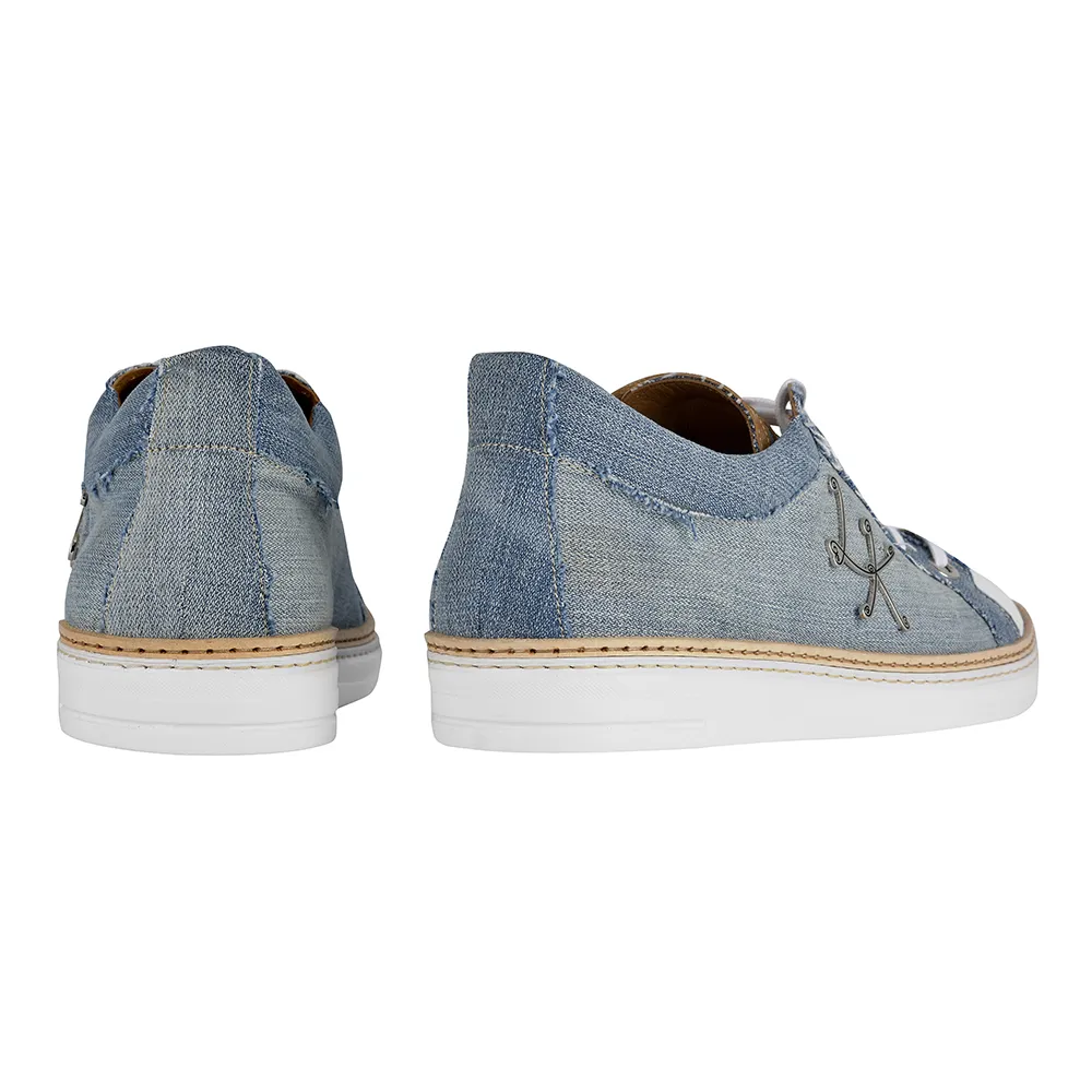 La sneakers uomo topjeans – art.6012 è una sneakers di tendenza in tessuto tecnico jeans e puntina in vitello bianco.