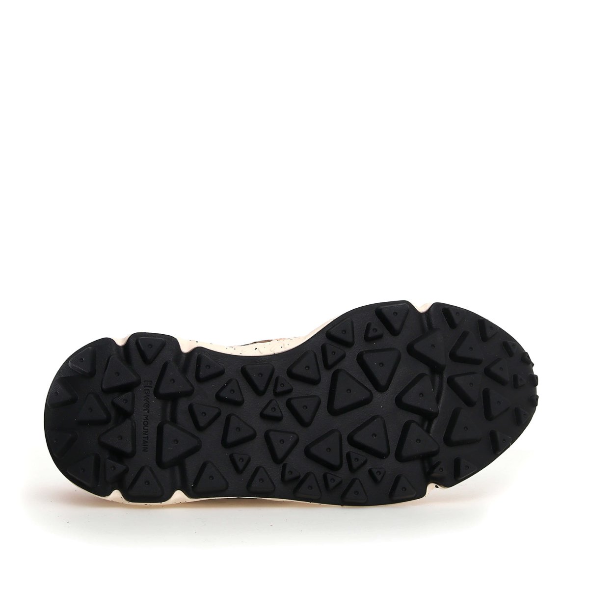 Sneaker Flower Mountain modello Yamano 3. Sportiva dal look metropolitano in suede maculato beige e tessuto tecnico. Riporti in suede marrone e sperone arancione. Soletta interna in sughero anatomica e antibatterica. Suola dentata per un grip ottimale.