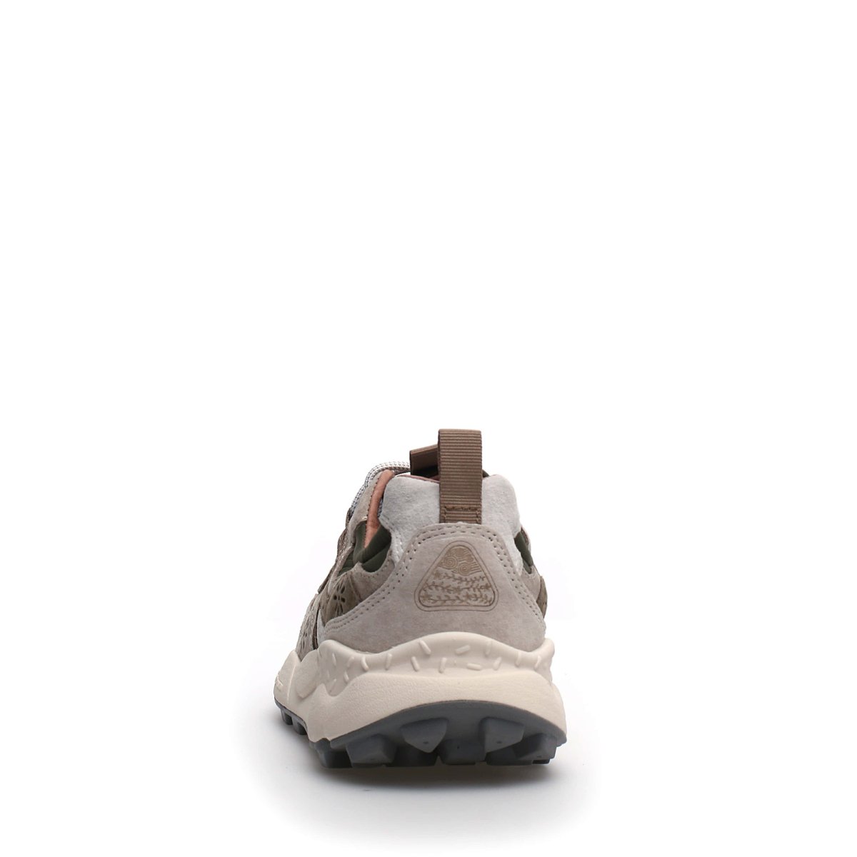 Sneakers Flower Mountain modello Yamano urbana dall’aspettto sport chic in suede off white e beige e nylon military. Suola dentata per un grip ottimale per un’altezza complessiva di cm 4. Sottopiede in sughero rigenerato e fodere antibatteriche. Calzata regolare.