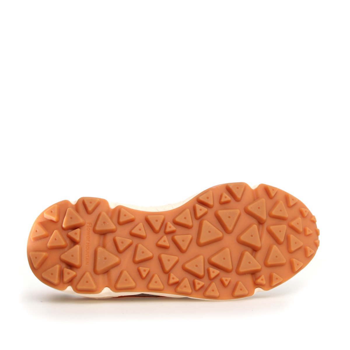Sneaker Flower Mountain modello Yamano. Urbana dall’aspetto sport chic in suede cuoio verde grigio e inserti in pelle bianca e nylon arancione in tinta con i lacci. Suola dentata per un grip ottimale per un’altezza complessiva di cm 4. Sottopiede in sughe rigenerato. Calzata regolare ultraconfort.