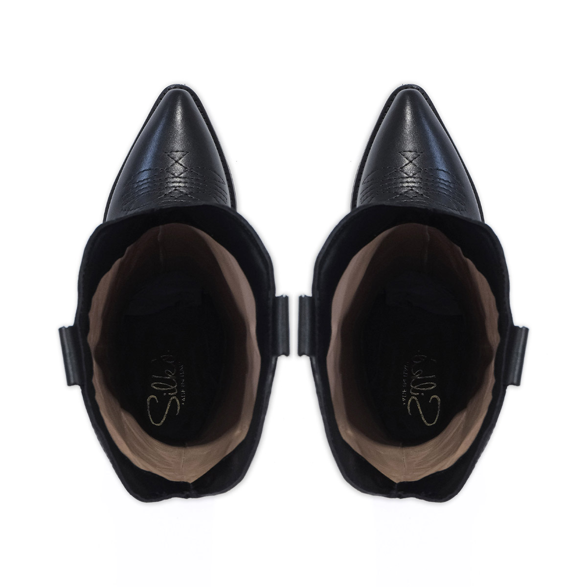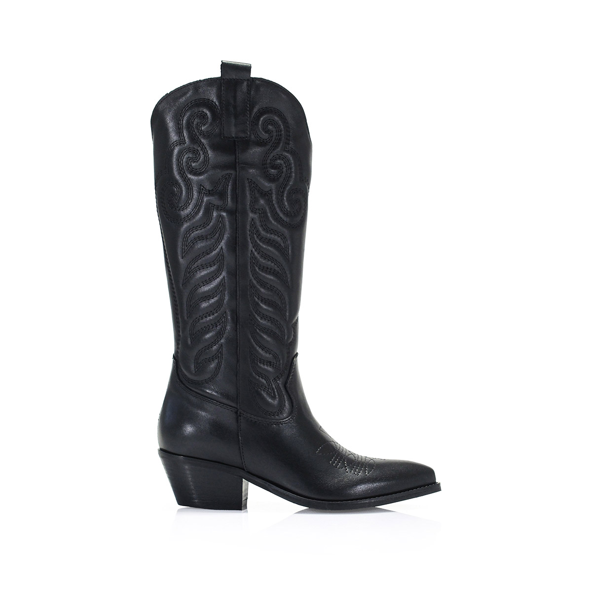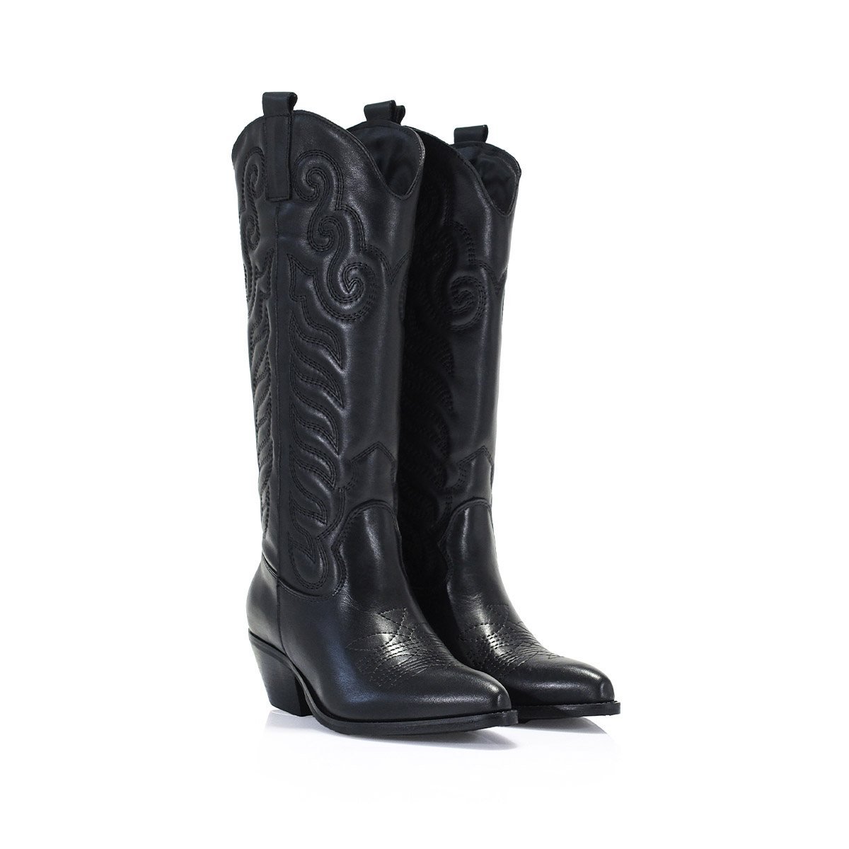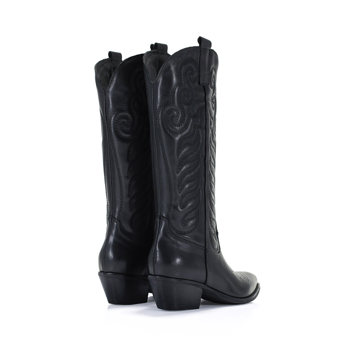 Stivale texano in pelle con ricamo in tinta, fodera e sottopiede in pelle tacco 5 cm produzione made in italy