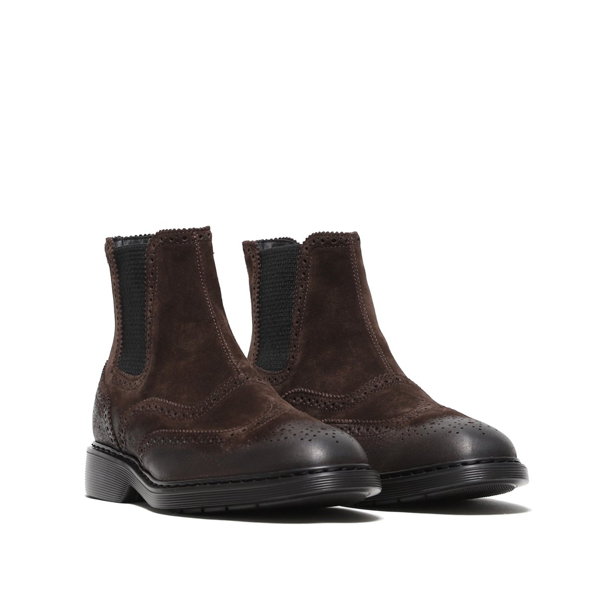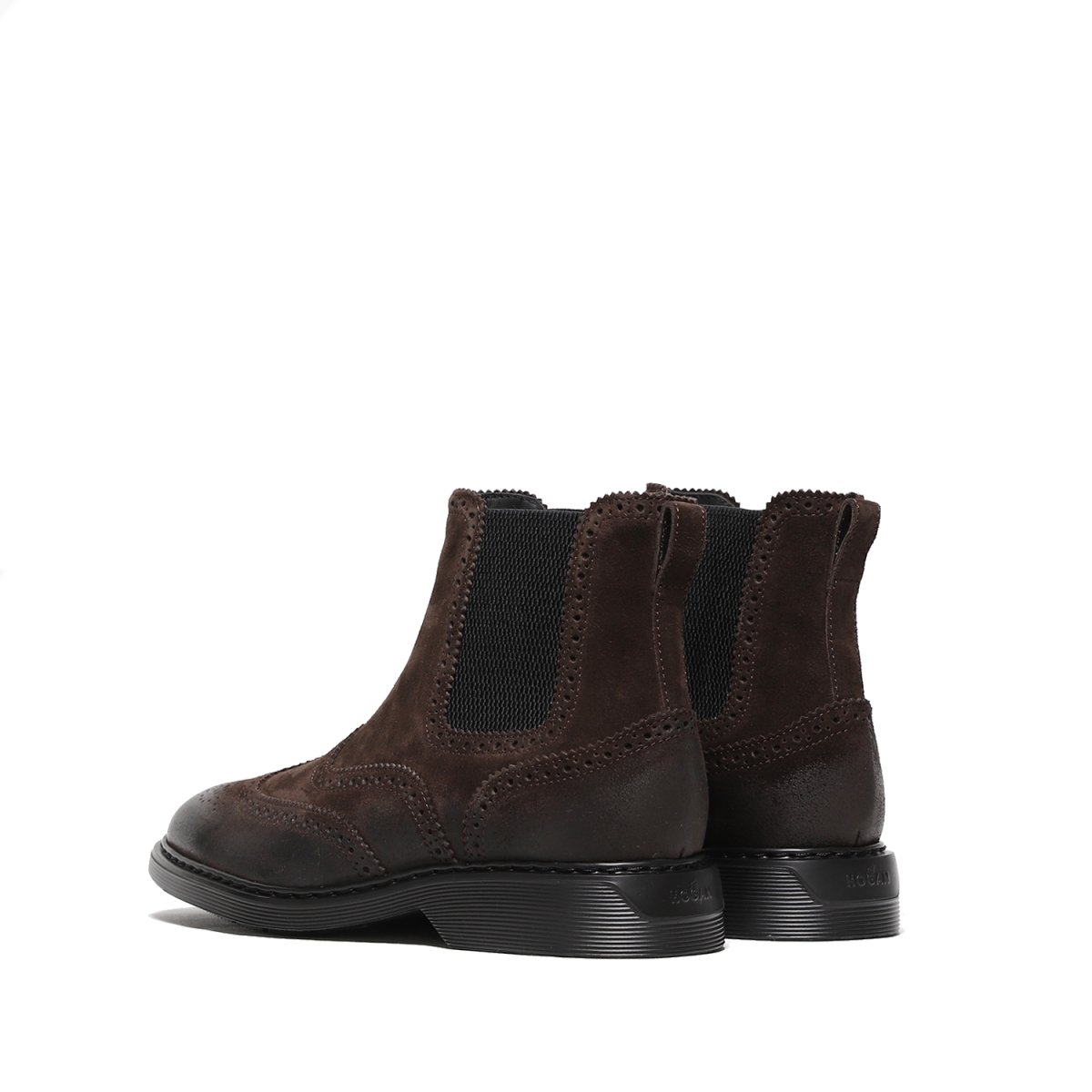 Stivaletto Hogan modello beatles con elastici laterali in morbido suede ebano anticato con motivo a coda di rondine sul puntale