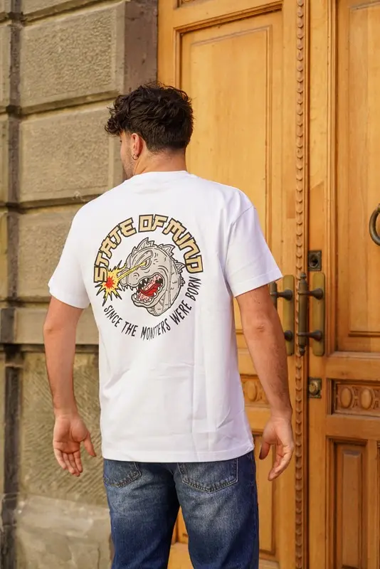 Nuovi arrivi State of mind TSSOM3314 MZILLA T-SHIRT T-shirt girocollo a manica corta con stampa Godzilla monster. 5tate of Mind è un marchio di abbigliamento streetwear ideato e progettato in Italia.