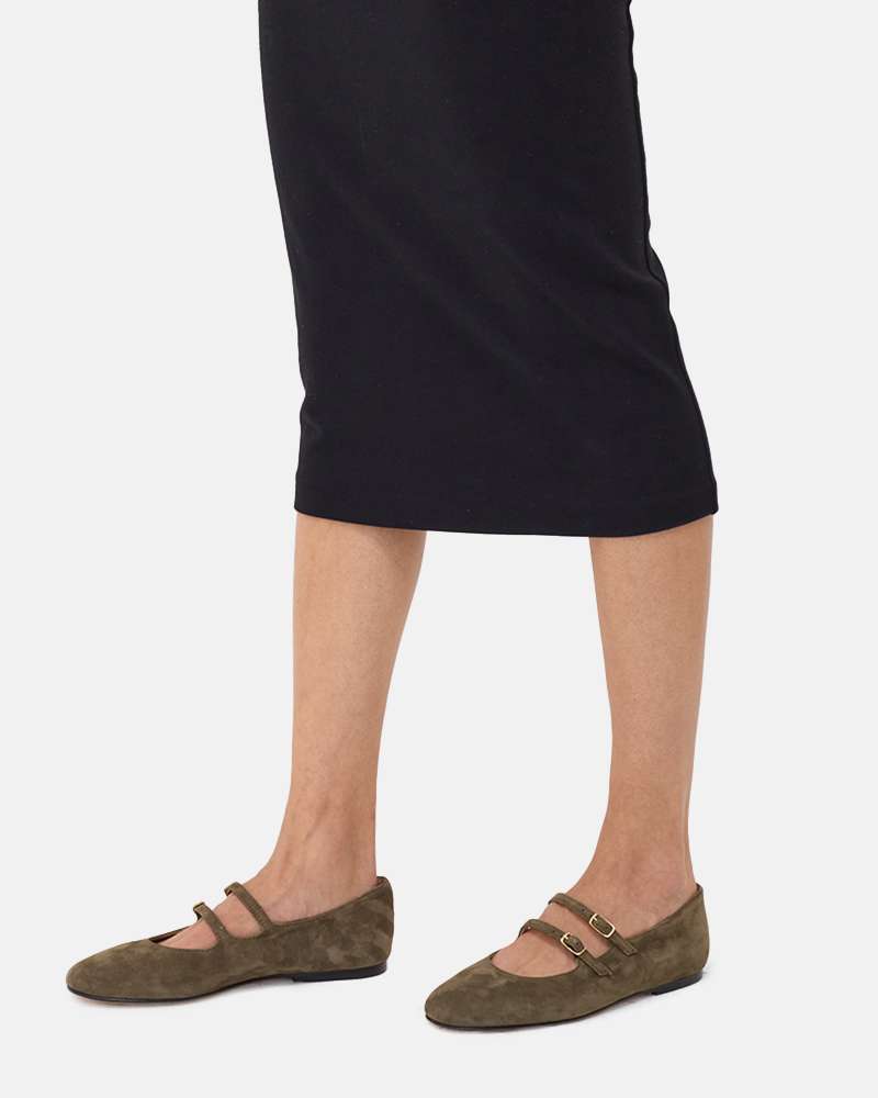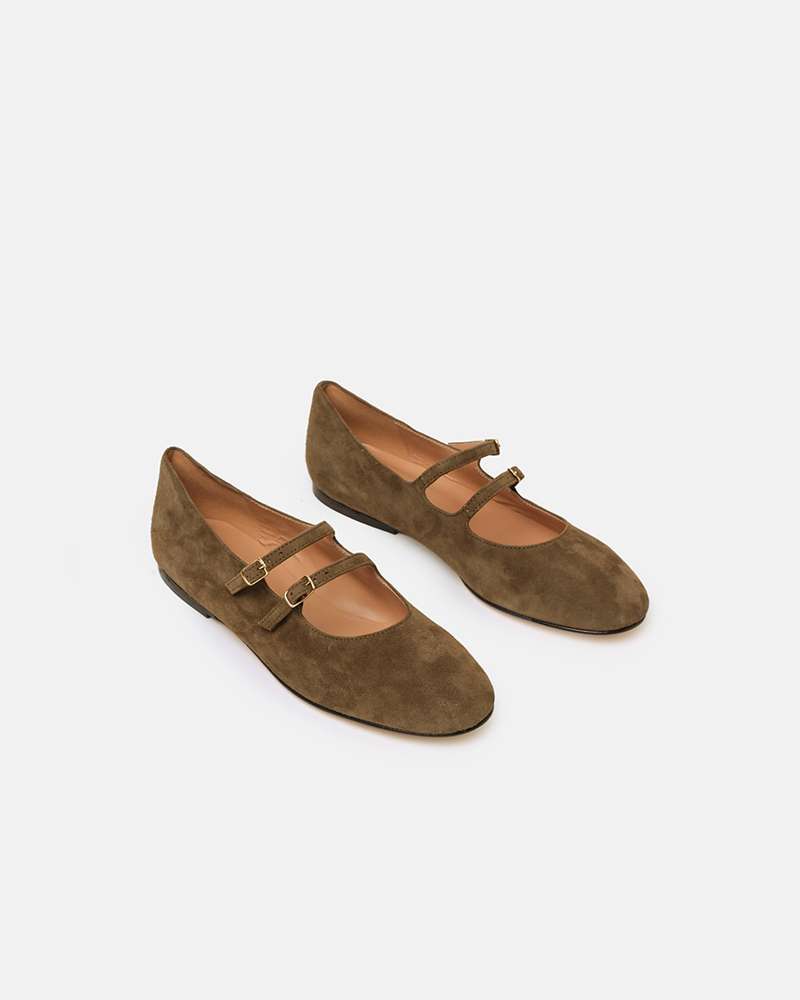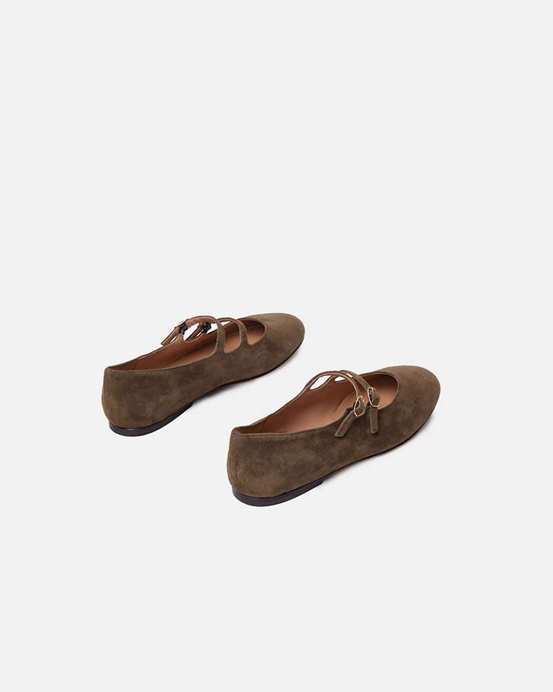 Ballerina in camoscio con 2 cinturini collo