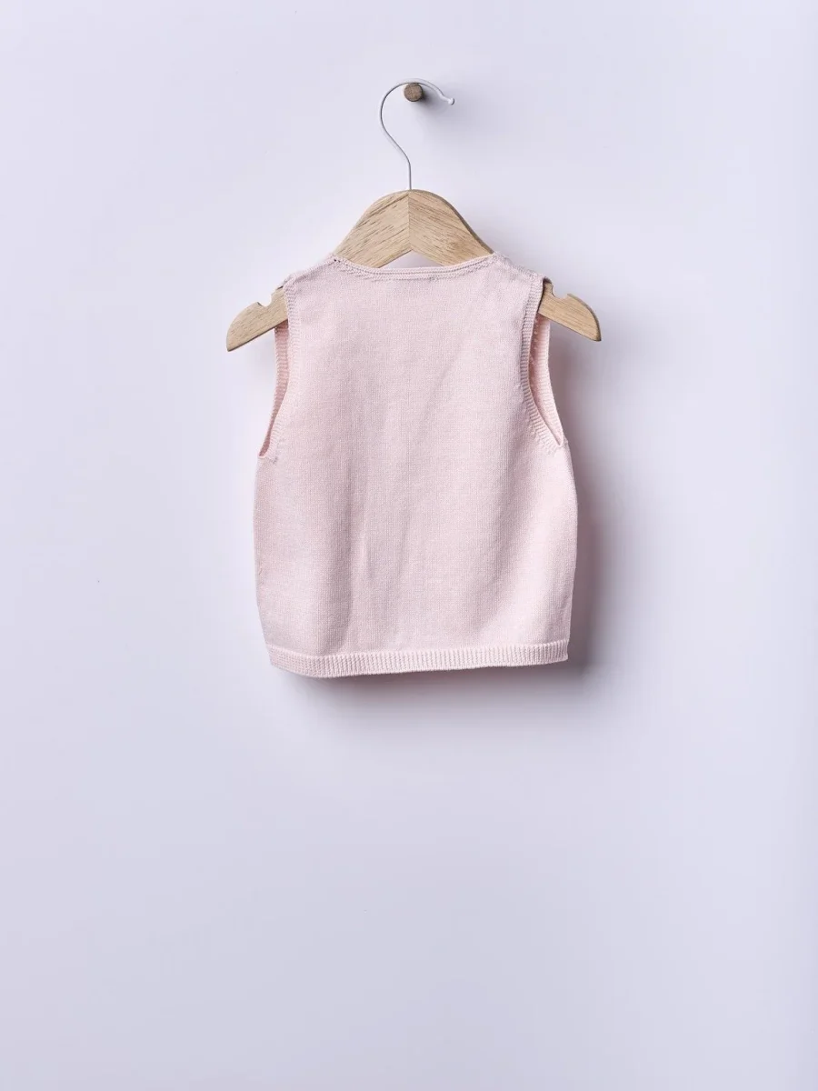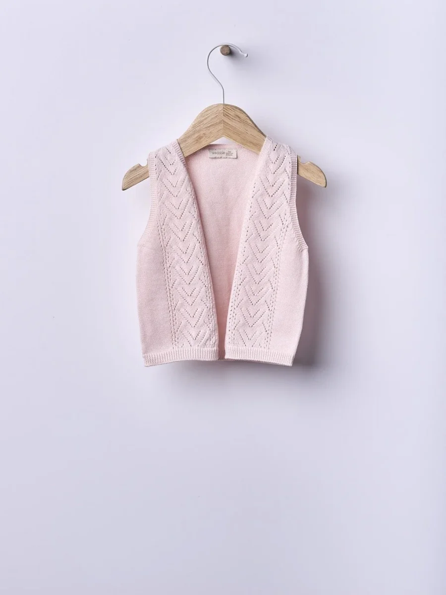 Il gilet in filo di cotone per neonata V25.02309A è perfetto per dare un tocco fashion alla tua bimba. Realizzato in morbido cotone, offre uno stile elegante e versatile. Ideale per tutte le stagioni, offre una vestibilità comoda per la pelle delicata del tuo bambino.