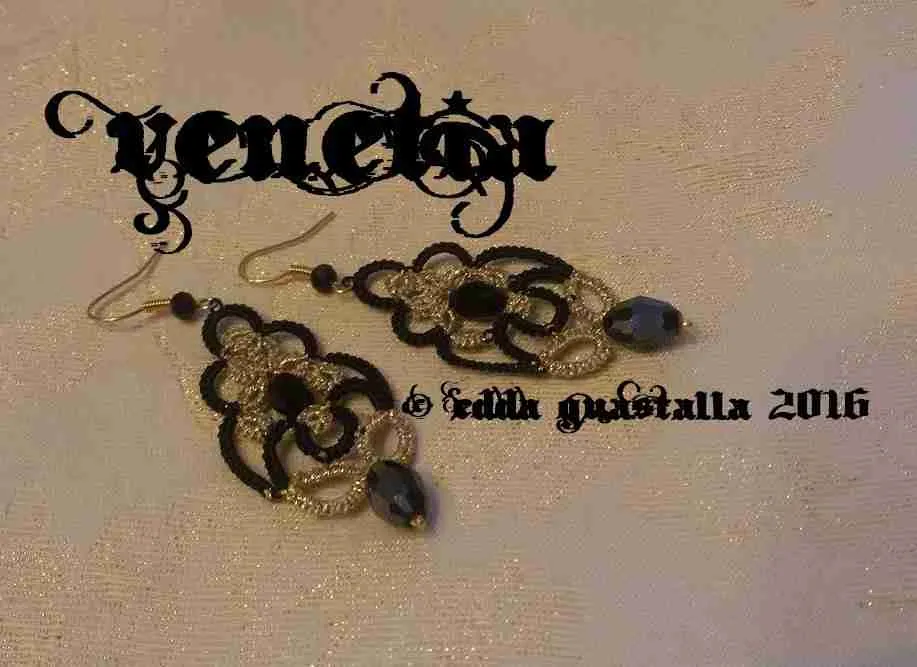 Schema in lingua italiana scaricabile in formato PDF degli orecchini modello Venetia, ideati da Edda Guastalla corredati da fotografie passo passo, disegni e spiegazioni. Occorrente: circa 6 m. di range 30 oro. Circa 3 m. di penny 20 nero, 2 perle ovali da 10 mm, 2 perle ovali da 7 mm 2 perline di conteria oro Difficoltà: medio bassa Con l’acquisto di questo tutorial potete realizzare quanti gioielli volete per voi o per venderli, è vietato condividere lo schema o parti di esso.