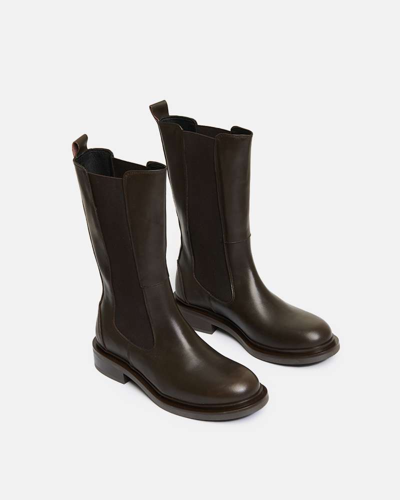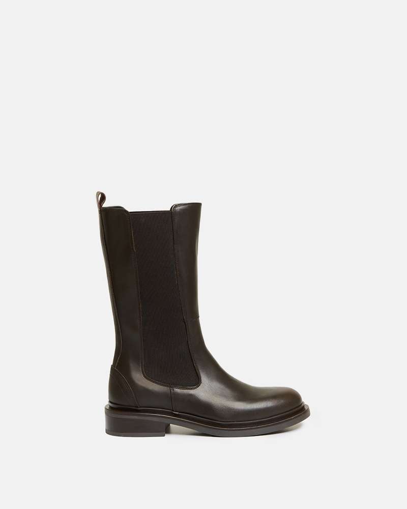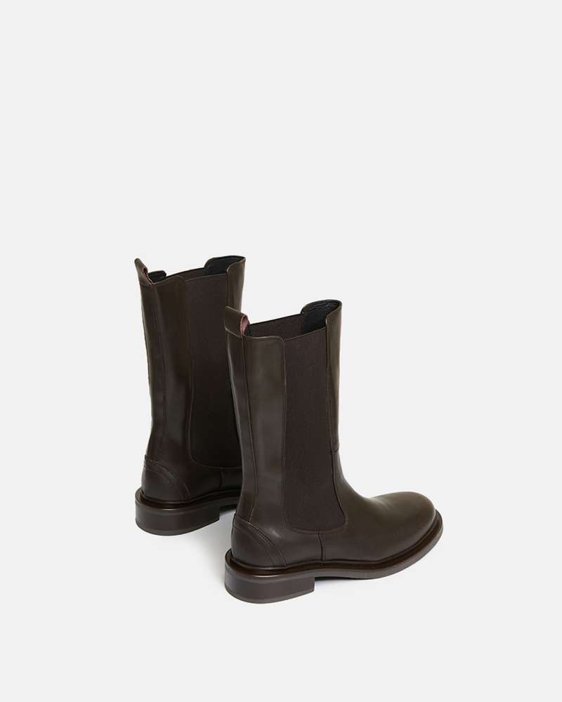 Tronchetto in pelle con elastici laterali Colore Testa di Moro Tacco fasciato pelle altezza 1,5 cm Fodere interne in pelle Sottopiede in pelle Fondo in gomma Prodotto interamente fabbricato in Italia