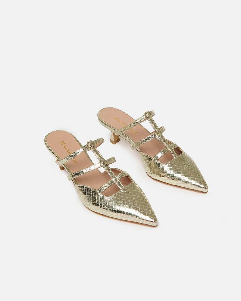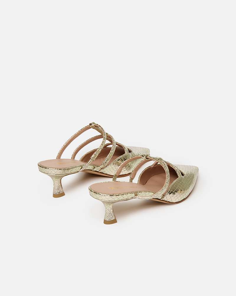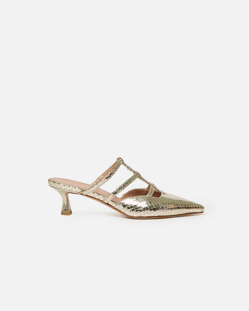 Sabot in pelle stampato pitone Colore platino Tacco fasciato pelle altezza 4 cm Fodere interne in pelle Sottopiede in pelle Fondo in cuoio Prodotto interamente fabbricato in Italia