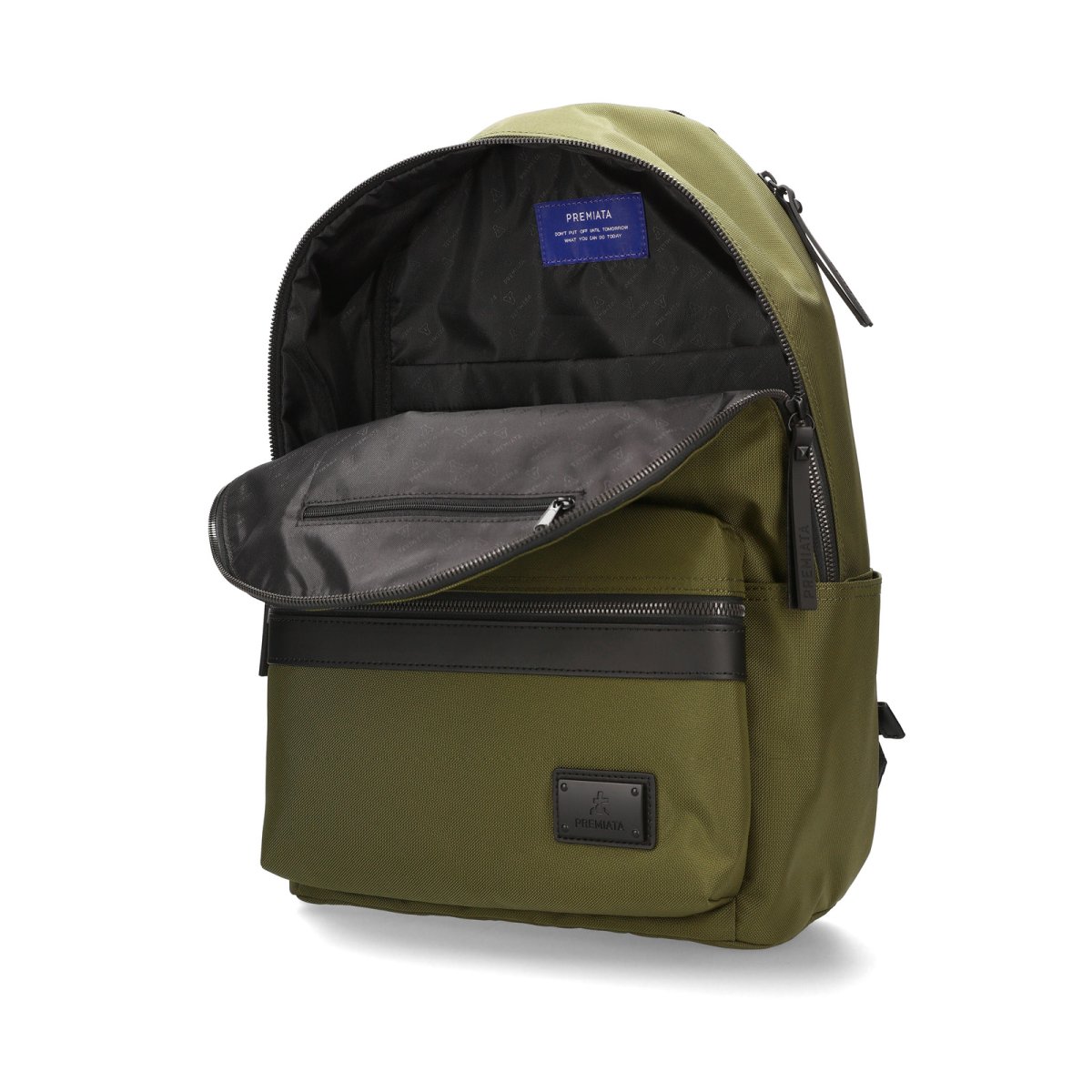 - Spallacci imbottiti in EVA e tasche frontali impermeabili con finiture in pelle con zip metal lux nere.